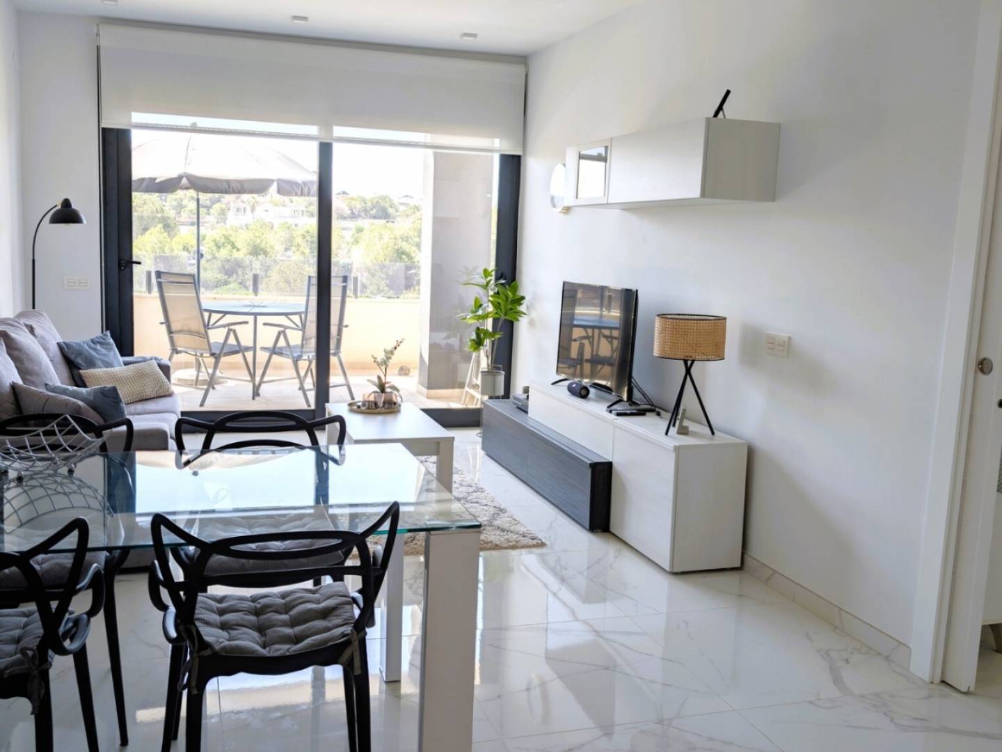 Prächtige Wohnung im prestigeträchtigen Viertel Villamartín in Orihuela Costa (Alicante) an der Costa Blanca . Diese elegante 2-Zimmer-Wohnung mit 2 Bädern bietet auf 75 m² Wohnfläche (82 m² Nutzfläche ) ein perfektes Gleichgewicht aus Komfort, modernem Design und erstklassiger Lage . Dank der hervorragenden Südostausrichtung ist die Wohnung lichtdurchflutet und bietet den ganzen Tag über eine warme und einladende Atmosphäre. Die voll ausgestattete Küche im amerikanischen Stil geht fließend in den Wohn-/Essbereich über und schafft so einen funktionalen und stilvollen Raum, ideal für den Alltag und zum Bewirten von Gästen. Die Wohnung verfügt über eine Klimaanlage mit Wärmepumpe , doppelt verglaste Fenster für optimale Wärme- und Schalldämmung und wird komplett möbliert verkauft – sofort bezugsfertig oder ideal zur Vermietung. Die Wohnung befindet sich in einer privaten Wohnanlage mit Gemeinschaftspool und gepflegten Gärten und bietet dank des gesicherten Eingangs und des umzäunten Grundstücks ein ruhiges und sicheres Wohnumfeld. Die hervorragende Lage in Villamartín mit seinen zahlreichen Annehmlichkeiten wie Restaurants, Geschäften und renommierten Golfplätzen macht diese Immobilie zu einer idealen Wahl als Hauptwohnsitz , Zweitwohnsitz an der Costa Blanca oder Kapitalanlage . Sie vereint Stil, Sicherheit und den entspannten mediterranen Lebensstil in einer der begehrtesten Gegenden im Süden Alicantes.