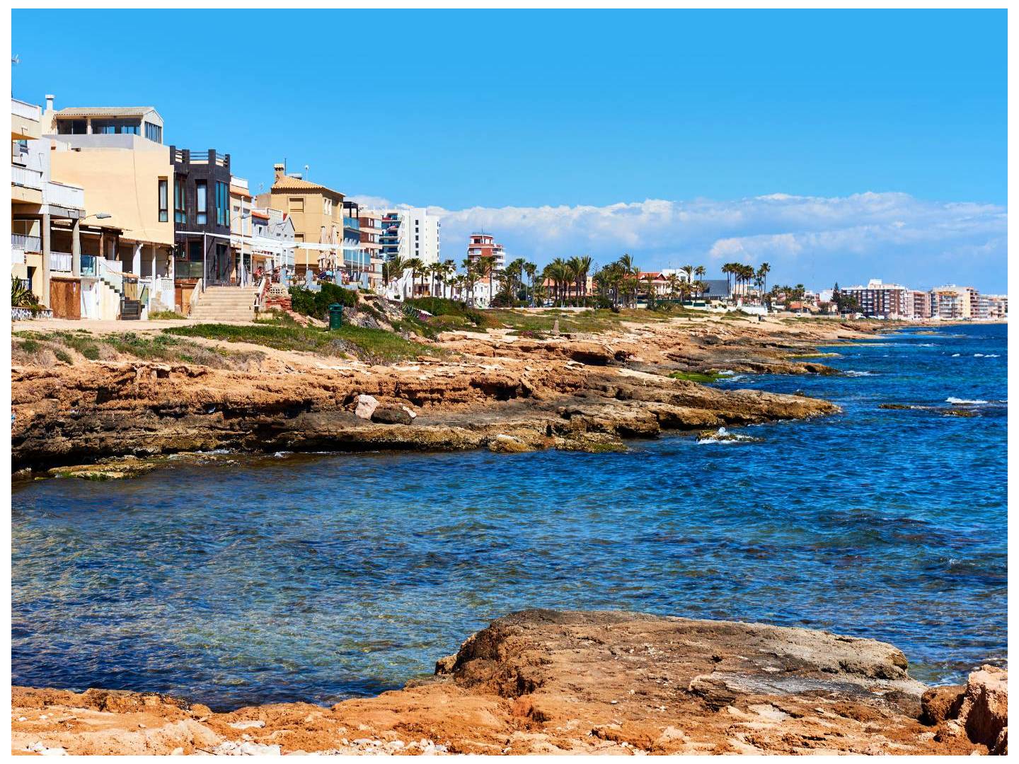 Torrevieja bietet ein ideales Klima zum ganzjährigen Wohnen und lange Strandpromenaden, die zu jeder Jahreszeit zum Sonnenbaden einladen. Der südlichste Strand ist die Playa de los Náufragos, während sich im Stadtzentrum die Playa del Cura und die Playa de Los Locos befinden. Der längste und nördlichste Strand ist die Playa de la Mata, von der aus man einen Tagesausflug zum Aussichtspunkt Torre del Moro unternehmen kann. Die Salinen von Torrevieja zählen zu den produktivsten Europas, wobei der Großteil des Salzes exportiert wird. Etwas weiter südlich, innerhalb der Stadtgrenzen von Torrevieja, liegt der südlichste Naturpark der Costa Blanca: die Lagunas de La Mata-Torrevieja. Die Stadt bietet eine große Auswahl an Restaurants, Bars und Strandbars , die köstliche und gesunde mediterrane Küche servieren. Diese wird mit Gemüse, Obst und hochwertigen Zutaten nach traditionellen Methoden, mit kulinarischem Fachwissen und professioneller Expertise zubereitet. Auch eine feine Auswahl an Meeresfrüchten wird angeboten. Die Stadt ist auch verkehrstechnisch gut angebunden , insbesondere über den Flughafen Alicante, den Bahnhof San Isidro und die Mittelmeerautobahn, wodurch alle wichtigen Städte gut erreichbar sind.