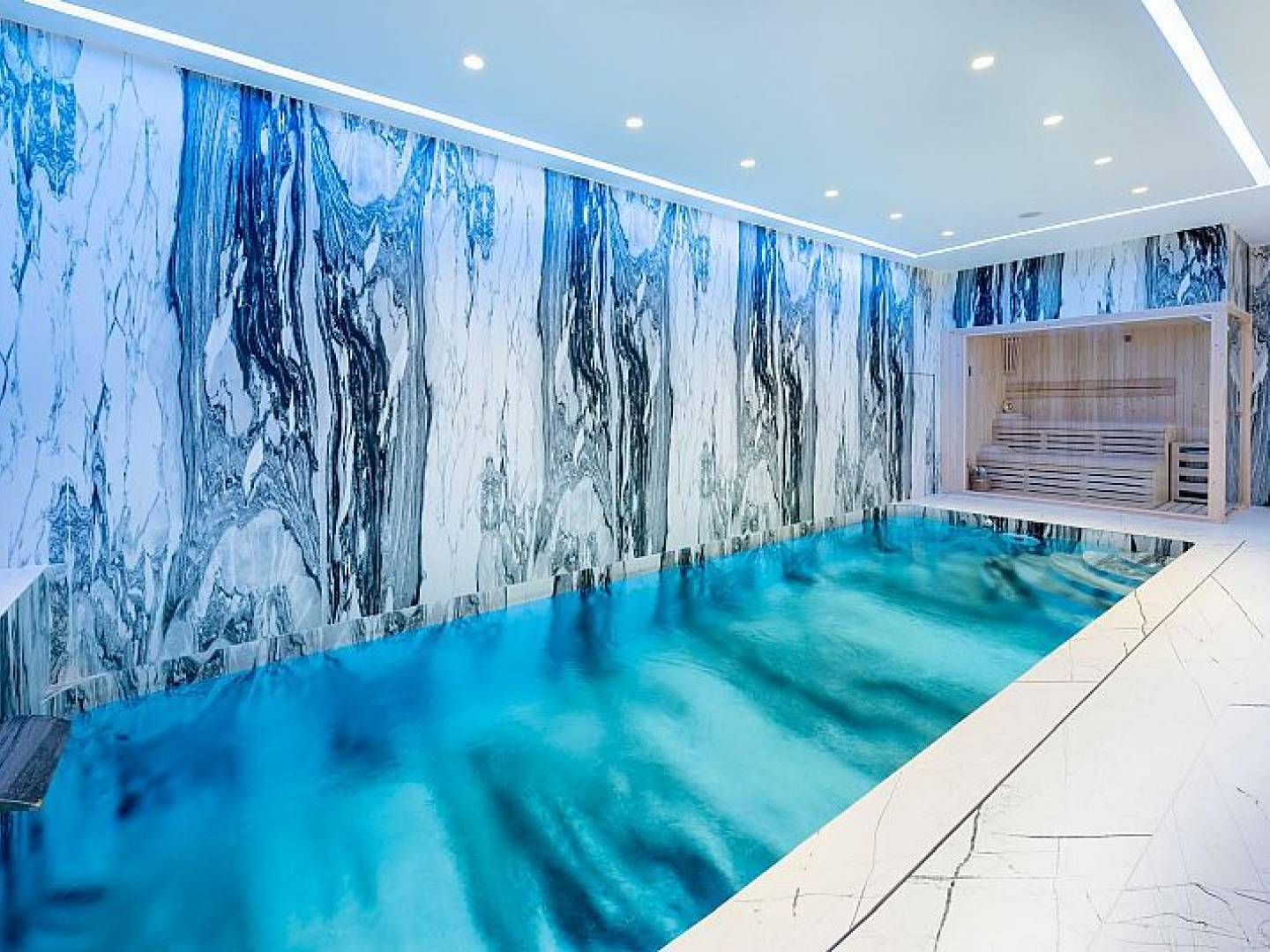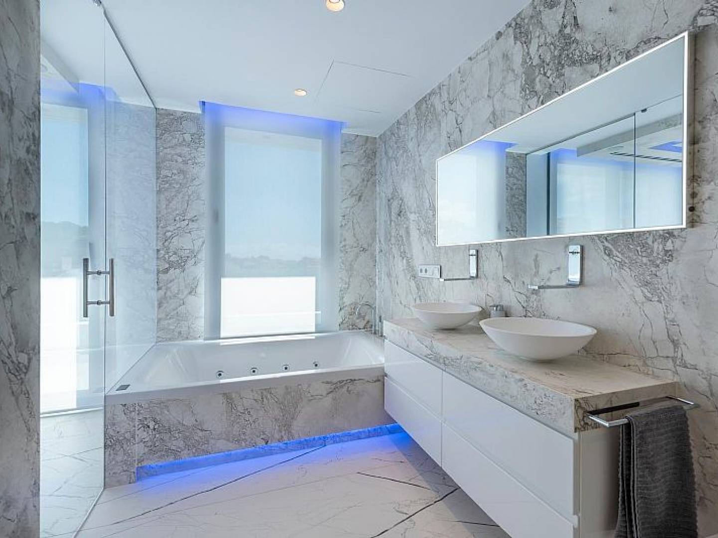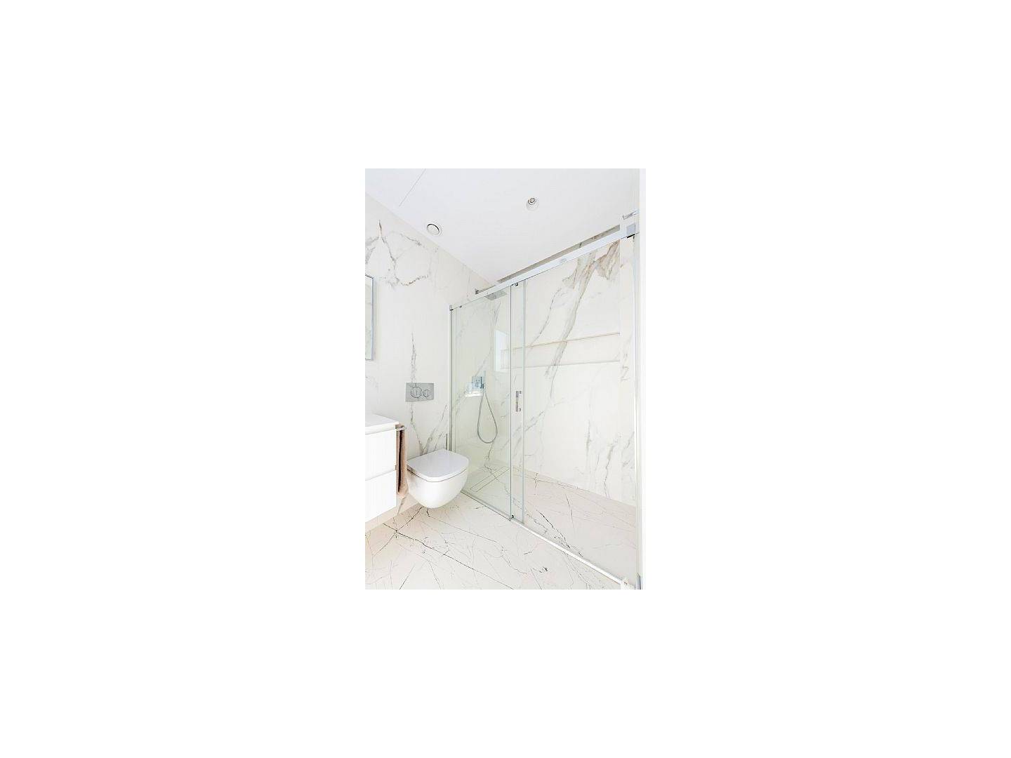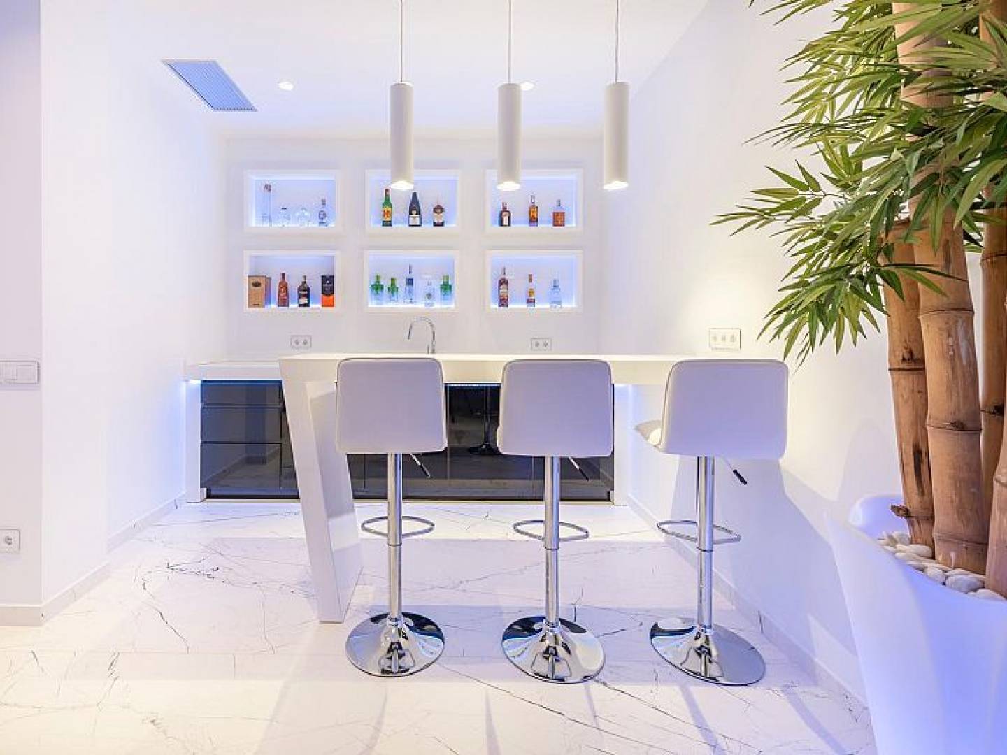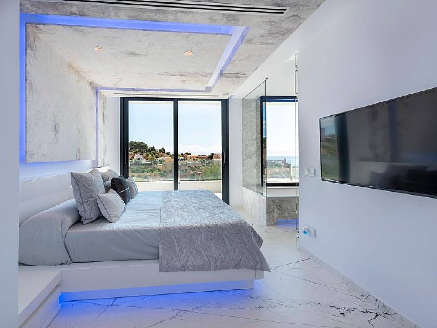 Das Innere der Villa ist mit luxuriösen Merkmalen ausgestattet, die maximalen Komfort garantieren. Marmorböden verleihen einen Hauch von Eleganz, während die Fußbodenheizung das ganze Jahr über eine angenehme Temperatur gewährleistet. Die Villa ist komplett möbliert und mit hochwertigen Geräten ausgestattet, was einen reibungslosen Umzug erleichtert. Elektrische Rollläden und das Smart-Home-System bieten zusätzlichen Komfort und Sicherheit. Darüber hinaus sorgt die Klimaanlage in den wärmeren Monaten für eine kühle und angenehme Umgebung. Einbauschränke in den Schlafzimmern bieten reichlich Stauraum.