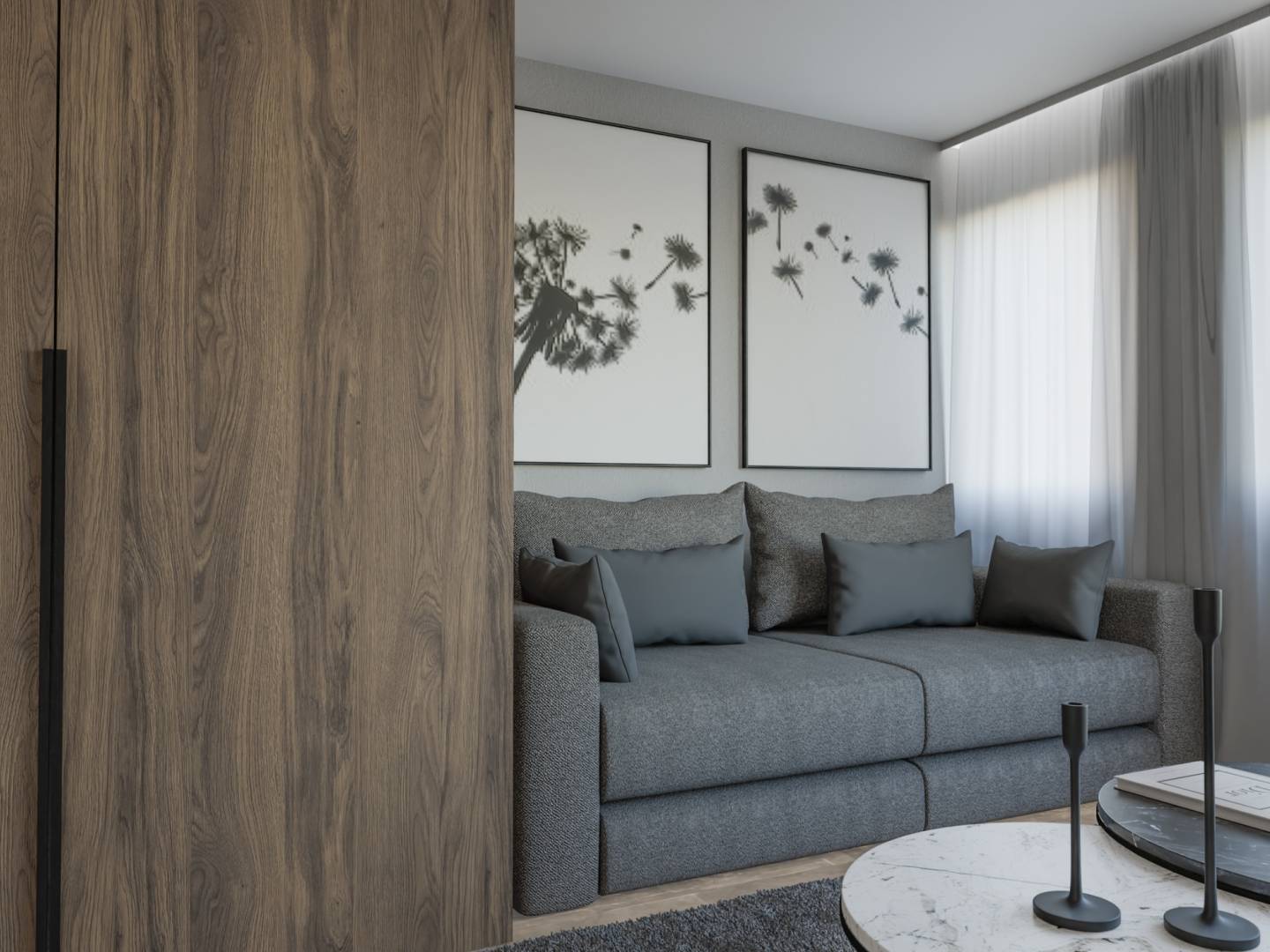 Die Innenräume jeder Wohnung sind auf optimalen Komfort und Funktionalität ausgelegt. Apartments, Erdgeschosswohnungen und Penthäuser sind mit einem oder zwei Schlafzimmern und einem oder zwei Badezimmern verfügbar und bieten so für jede Familie das Passende. Keramikfliesen verleihen den Wohnungen Eleganz und sind pflegeleicht. Die Wohnungen sind mit modernen Geräten und Einbauschränken ausgestattet, die den Stauraum optimal nutzen. Eine Video-Gegensprechanlage sorgt für zusätzliche Sicherheit und Komfort.