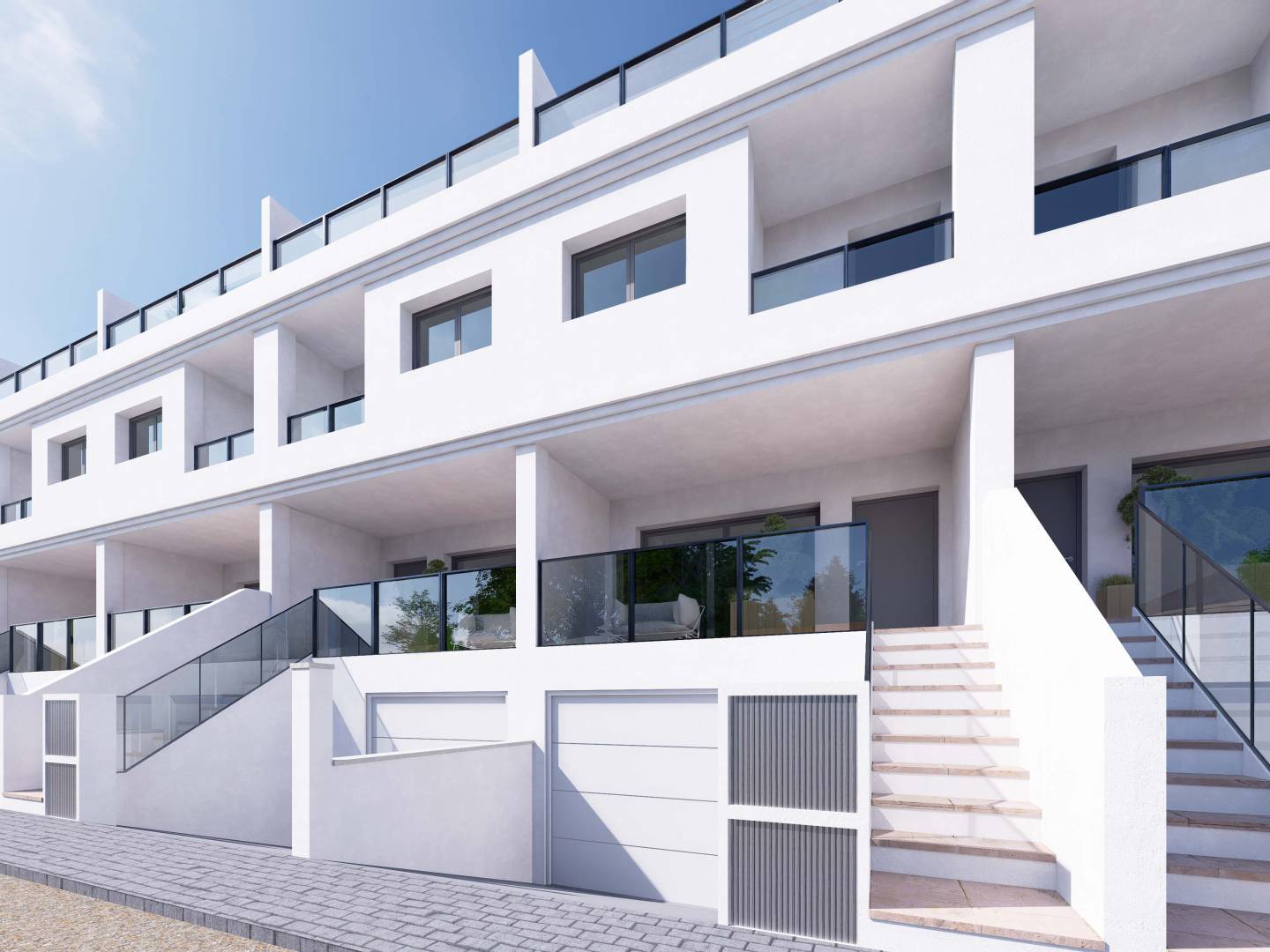 Die Außenbereiche dieser Reihenhäuser in Rafal wurden so gestaltet, dass sie einen Außenwohnraum bieten, der das Innere der Häuser ergänzt. Jede Immobilie verfügt über eine private Terrasse, ideal zum Entspannen oder für Familienfeiern im Freien. Darüber hinaus verfügen die Häuser über eine Garage, die Komfort und Sicherheit für das Parken von Fahrzeugen bietet. Das Außendesign fügt sich harmonisch in die Umgebung ein und bietet einen attraktiven und funktionalen Raum, der dazu einlädt, das mediterrane Klima das ganze Jahr über zu genießen. Die gemeinschaftlichen Gartenanlagen verleihen dem Komplex einen Hauch von Grün und Frische und schaffen eine ruhige und angenehme Umgebung für alle Bewohner.