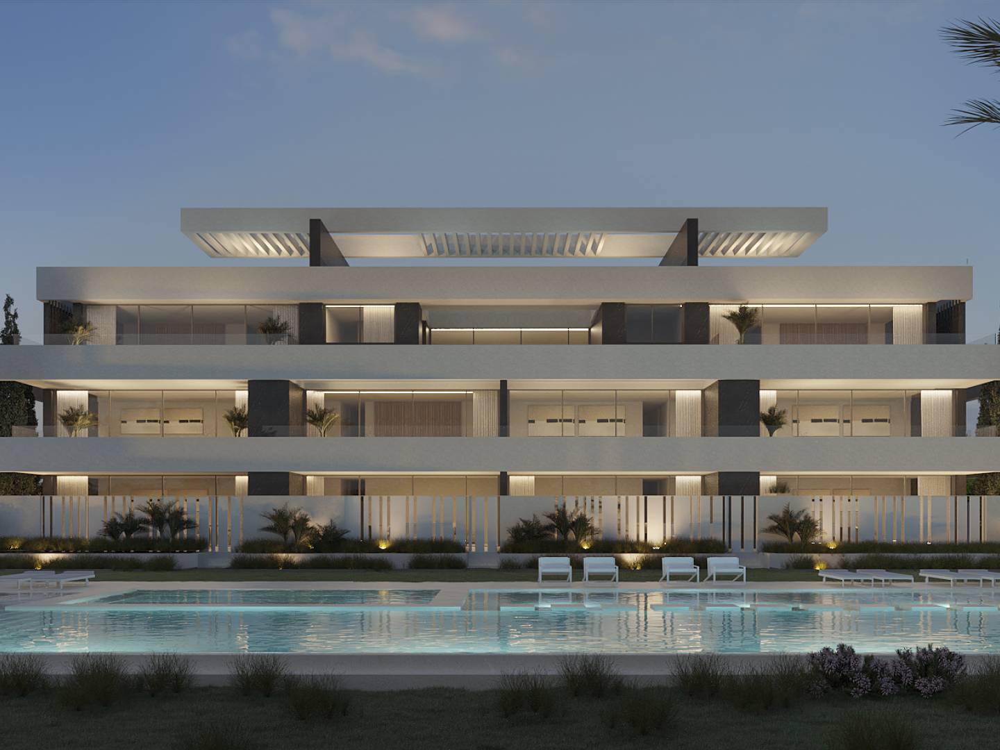 Die Außenbereiche dieser Wohnungen sind so gestaltet, dass sie das mediterrane Klima optimal nutzen. Jede Immobilie verfügt über private Terrassen, ideal zum Entspannen im Freien oder zum Genießen einer Mahlzeit im Freien. Darüber hinaus bieten einige Einheiten Solariums, die zusätzlichen Raum für Freizeit und Entspannung bieten. Die Einbeziehung von Pergolen verleiht einen Hauch von Eleganz und Funktionalität, sodass Sie den Außenbereich mit Schatten und Stil genießen können. Die Wohnungen sind mit Jacuzzis ausgestattet, die zusätzlichen Luxus für persönliche Entspannung und Wohlbefinden bieten.