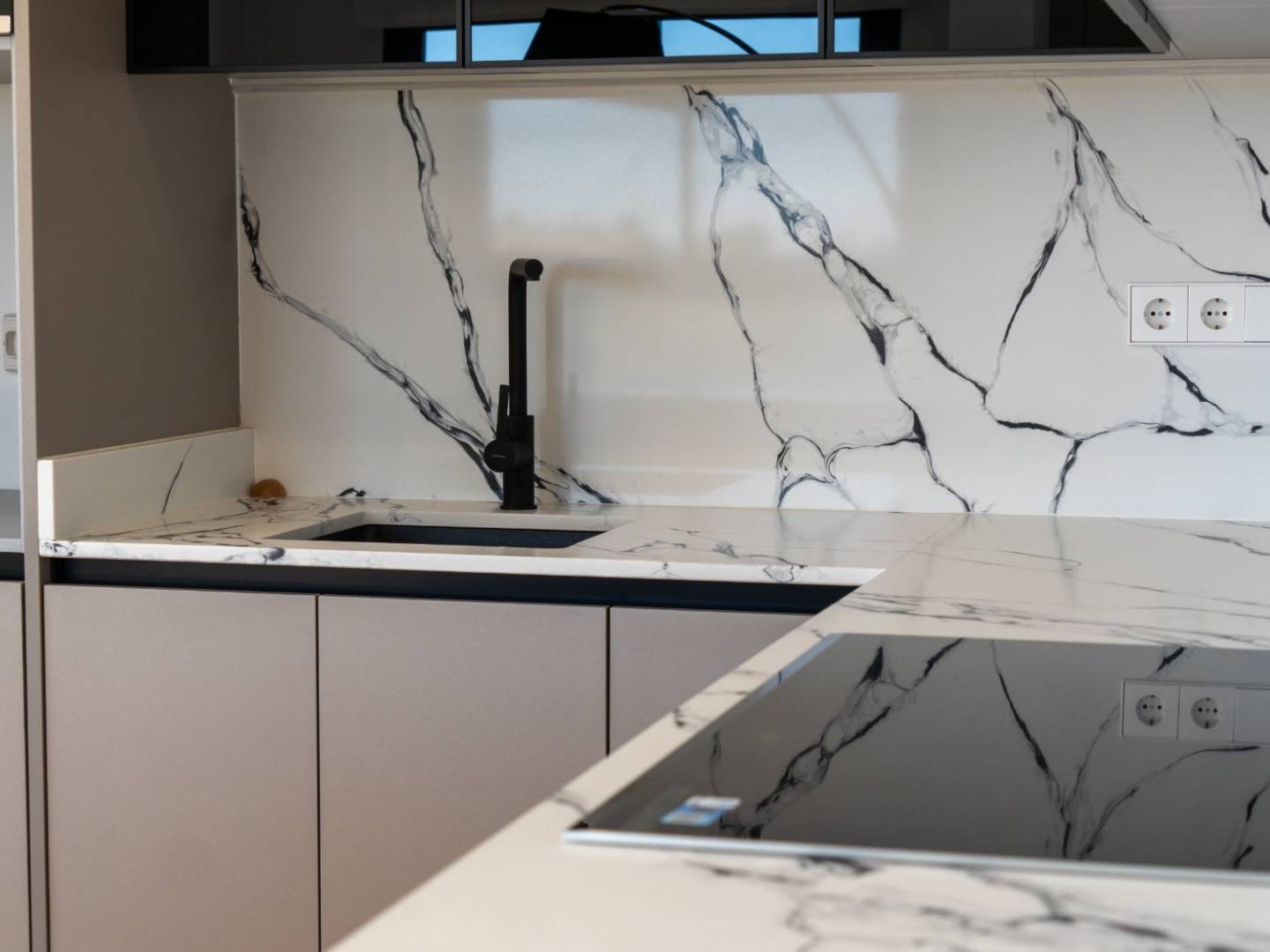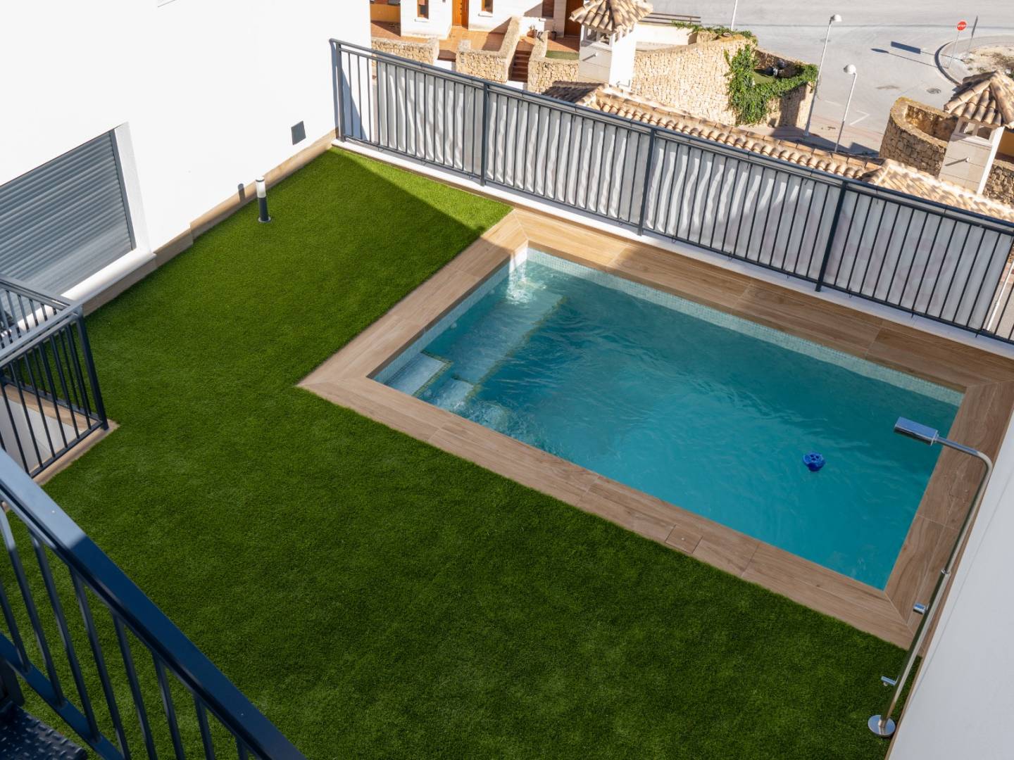 Die komplett möblierte und ausgestattete Küche mit ihren hochmodernen Geräten bildet das Herzstück des Hauses. Auf dem Solarium sorgt eine Außendusche für ein erfrischendes und exklusives Ambiente – ideal zum Entspannen unter der mediterranen Sonne.