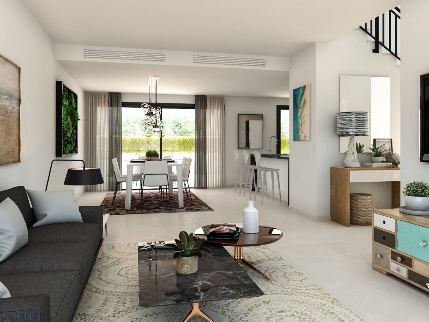 Diese neue Anlage in El Montgó, einer der exklusivsten Gegenden von Denia, bietet einen modernen und komfortablen Lebensstil in einer privilegierten Umgebung. Die Anlage ist für Sicherheit und Privatsphäre umzäunt und bietet zweistöckige Doppelhaushälften mit Solarium, die mit 2 oder 3 Schlafzimmern, jeweils mit eigenem Grundstück und privatem Parkplatz, erhältlich sind. Es gibt auch freistehende Villen mit 3 Schlafzimmern und Privatgrundstücken ab 220 m², ideal für diejenigen, die mehr Platz und Exklusivität suchen.