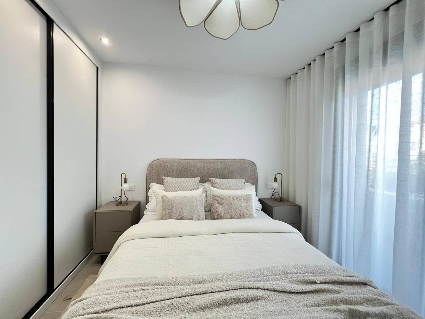 Das Innere der Reihenhäuser ist so gestaltet, dass es maximalen Komfort und Funktionalität bietet. Mit einer Aufteilung, die 3 Schlafzimmer und 2 Badezimmer umfasst, ist jeder Raum für den täglichen Gebrauch optimiert. Die Häuser sind mit modernen Geräten ausgestattet und verfügen über Einbauschränke, die praktische und elegante Stauraumlösungen bieten. Der Boden aus Feinsteinzeug verleiht einen Hauch von Raffinesse und ist pflegeleicht. Darüber hinaus sind die Häuser für die Installation einer Klimaanlage vorbereitet, um das ganze Jahr über eine angenehme Atmosphäre zu gewährleisten. Die Einbeziehung einer Video-Gegensprechanlage bietet ein zusätzliches Maß an Sicherheit und Komfort.