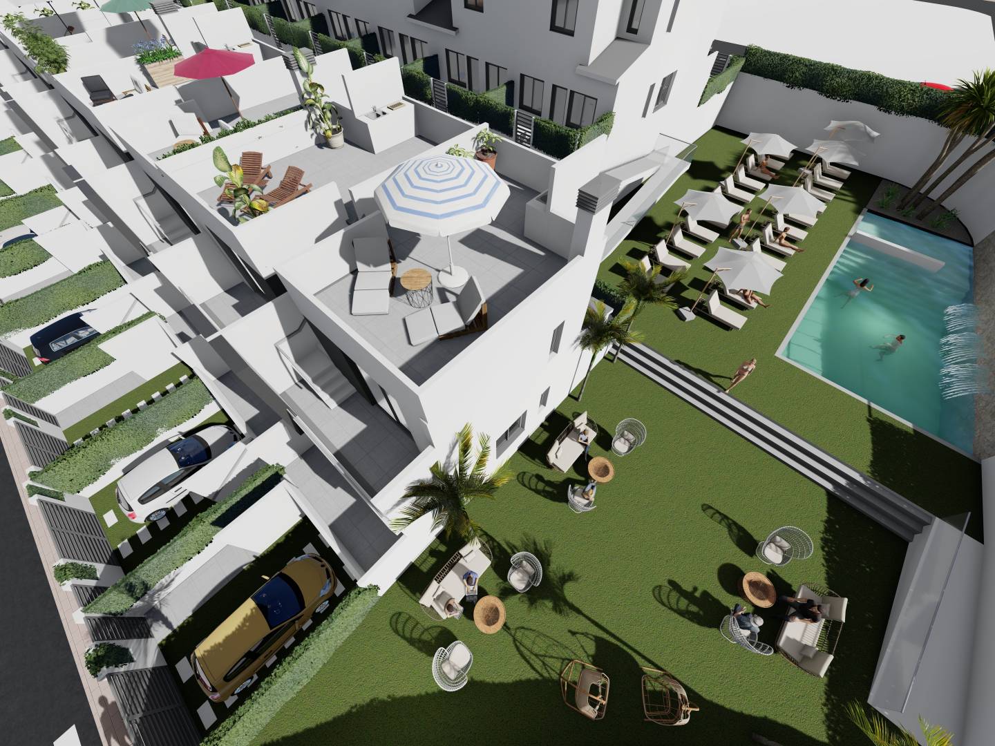 Die Außenbereiche dieser Bungalows sind darauf ausgelegt, das mediterrane Klima zu genießen. Jede Immobilie verfügt über einen privaten Garten, perfekt für entspannte Momente im Freien oder für Familienaktivitäten. Darüber hinaus bieten die Terrassen zusätzlichen Raum für Freizeitaktivitäten und ermöglichen es den Bewohnern, die Aussicht und die natürliche Umgebung der Wohnanlage zu genießen. Die Einbeziehung eines Solariums in jedem Bungalow bietet einen privilegierten Raum zum Sonnenbaden oder einfach zum Genießen der Panoramaaussicht.