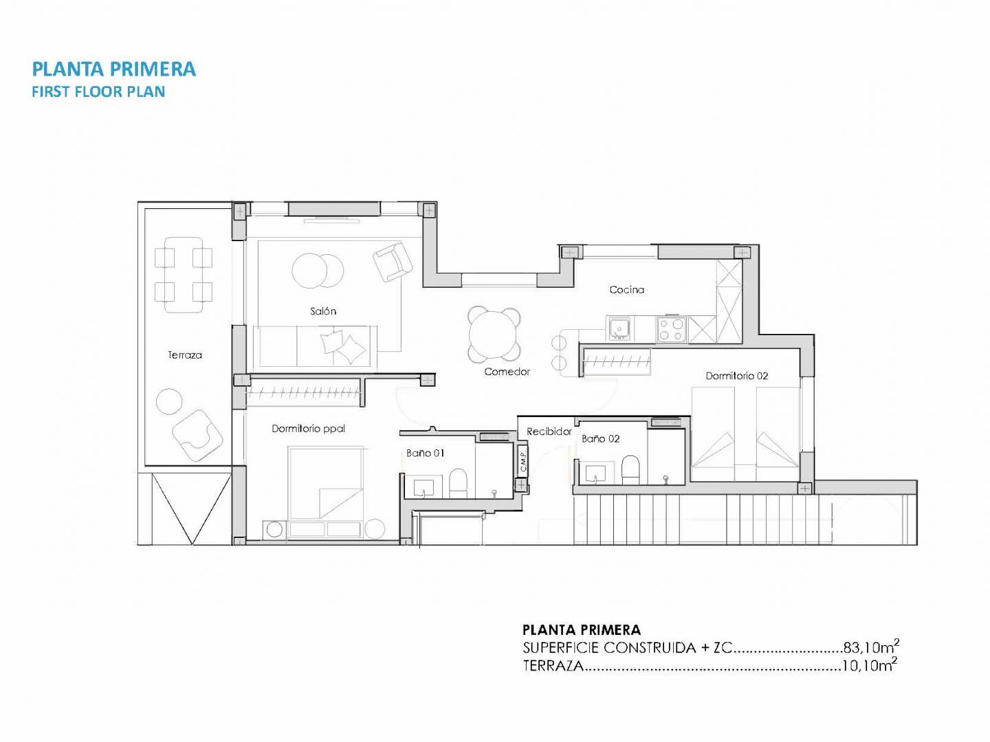 Die Wohnungen sind innen auf optimalen Komfort und Funktionalität ausgelegt. Mit zwei Schlafzimmern und zwei Badezimmern bietet jeder Raum Behaglichkeit und Privatsphäre. Die Wohnungen und Erdgeschosswohnungen sind klimatisiert und sorgen so ganzjährig für ein angenehmes Raumklima. Einbauschränke bieten effizienten Stauraum und halten die Räume ordentlich. Die Porzellanfliesen sind nicht nur ästhetisch ansprechend, sondern auch pflegeleicht – ideal für einen modernen und praktischen Lebensstil.