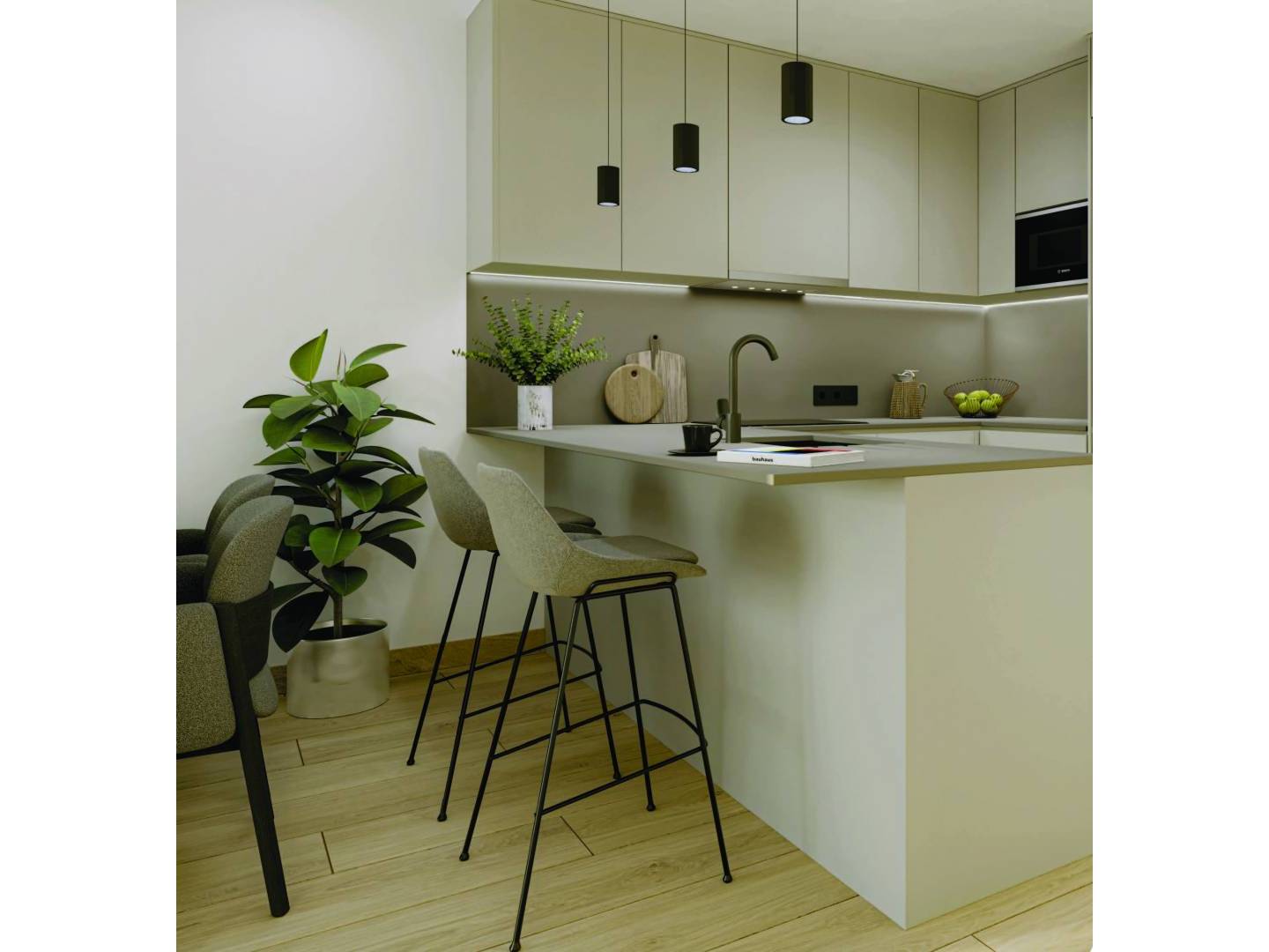 Die Wohnungen sind so gestaltet, dass sie Komfort und Funktionalität bieten. Mit Optionen von 2 und 3 Schlafzimmern und 2 Bädern ist jeder Raum für den täglichen Komfort optimiert. Einbauschränke sind eine Standardausstattung und bieten praktische und ästhetische Stauraumlösungen. Die Innenraumaufteilung ist darauf ausgelegt, das natürliche Licht optimal zu nutzen und helle, einladende Räume zu schaffen. Die Küchen und Wohnzimmer sind als Herzstück des Hauses konzipiert, wo Familie und Freunde zusammenkommen und besondere Momente genießen können.