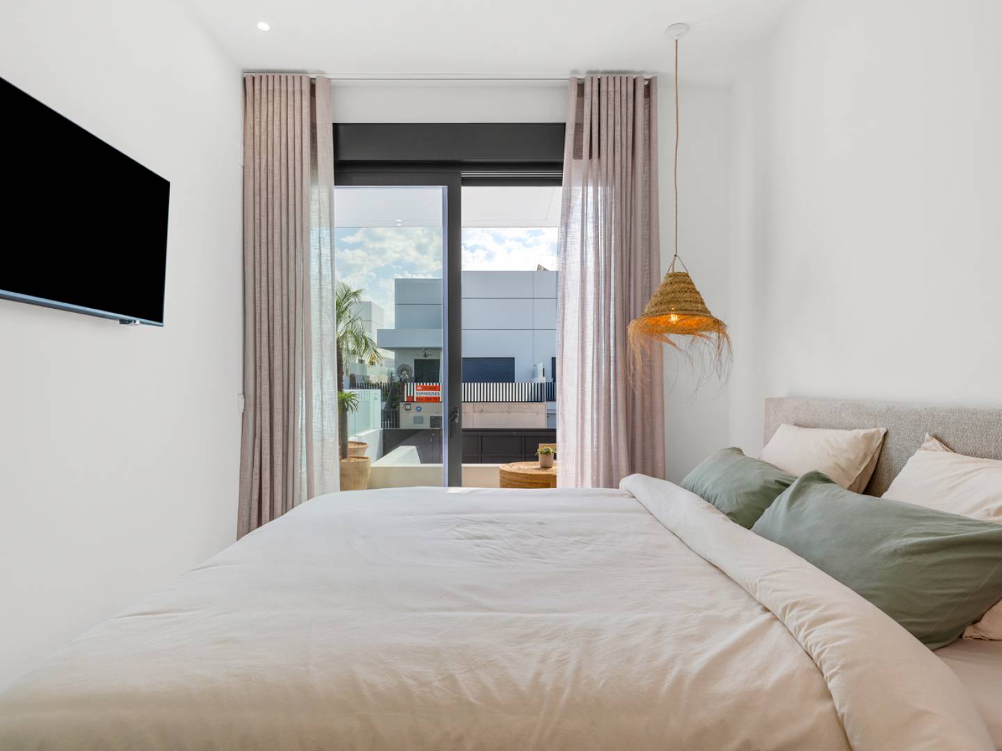 Das Innere der Reihenhäuser ist mit einem Fokus auf Funktionalität und Komfort gestaltet. Mit einer Aufteilung, die drei Schlafzimmer und zwei Badezimmer umfasst, ist jeder Raum optimiert, um Komfort und Privatsphäre zu bieten. Die Böden aus Feinsteinzeug verleihen einen Hauch von Eleganz und sind pflegeleicht, was sie ideal für den täglichen Gebrauch macht. Einbauschränke in den Schlafzimmern bieten effizienten Stauraum und halten die Räume aufgeräumt und organisiert. Die modernen Geräte sorgen dafür, dass die Küche ab dem ersten Tag einsatzbereit ist, was den Alltag der Bewohner erleichtert. Das Klimaanlagensystem garantiert das ganze Jahr über eine angenehme Umgebung, angepasst an die Bedürfnisse jeder Jahreszeit.