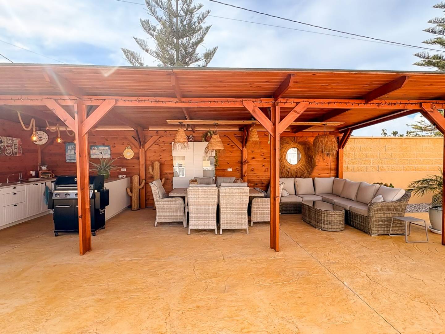 Das Anwesen lädt im Außenbereich zum Verweilen ein. Es verfügt über einen privaten Swimmingpool , eine voll ausgestattete Außenküche und ein praktisches Poolhaus , ideal für gesellige Runden und Feiern. Die überdachte Terrasse , die direkt ans Haus angrenzt, erweitert den Wohnraum und bietet einen perfekten Ort zum Entspannen im Schatten.