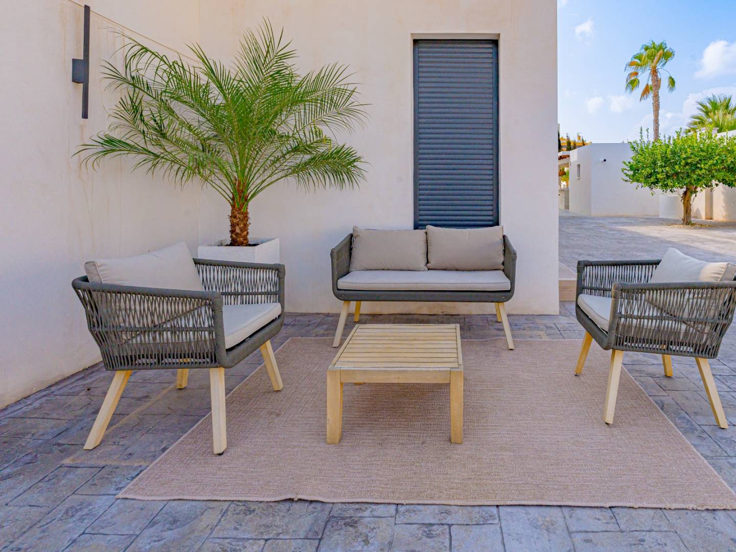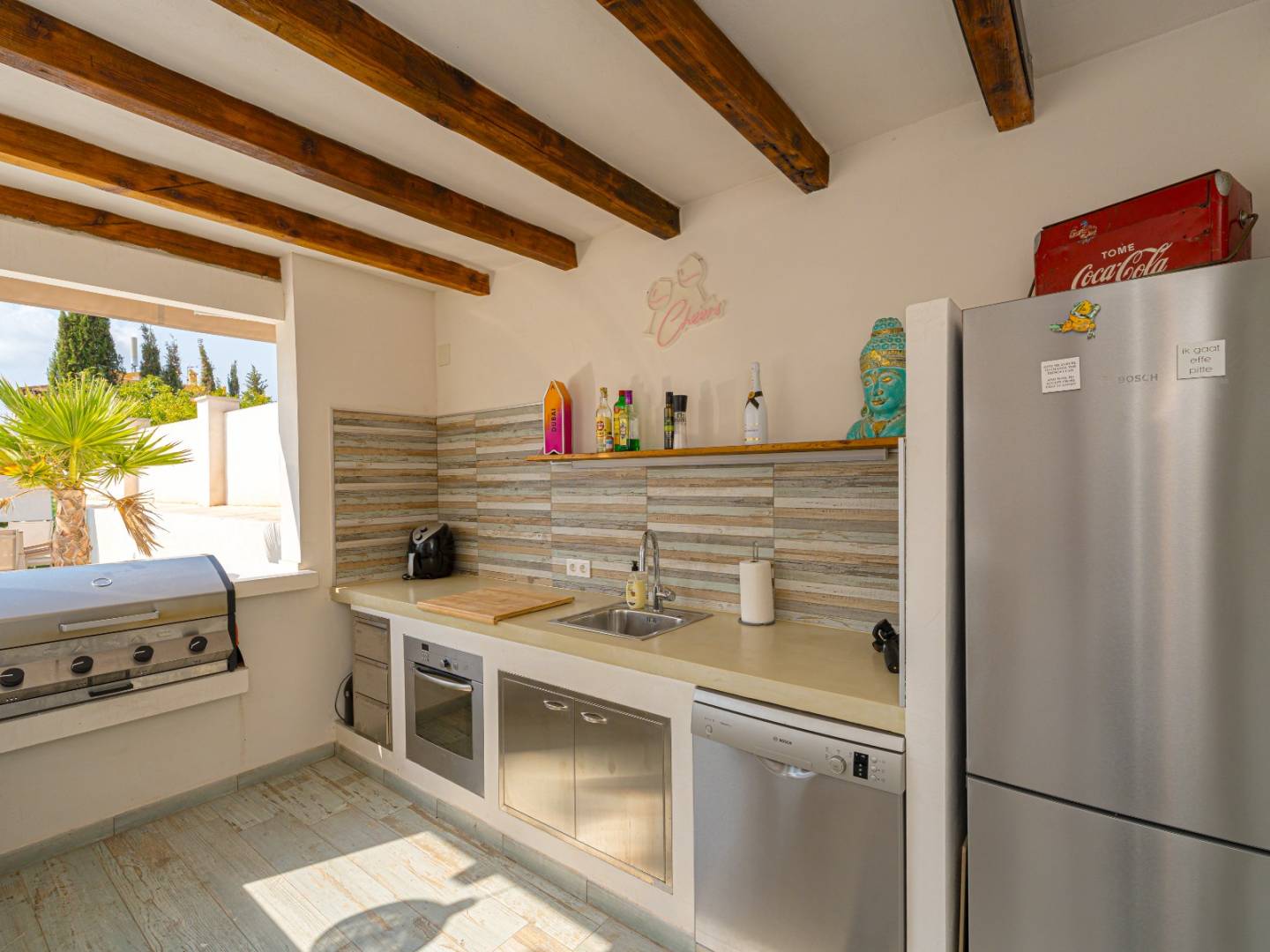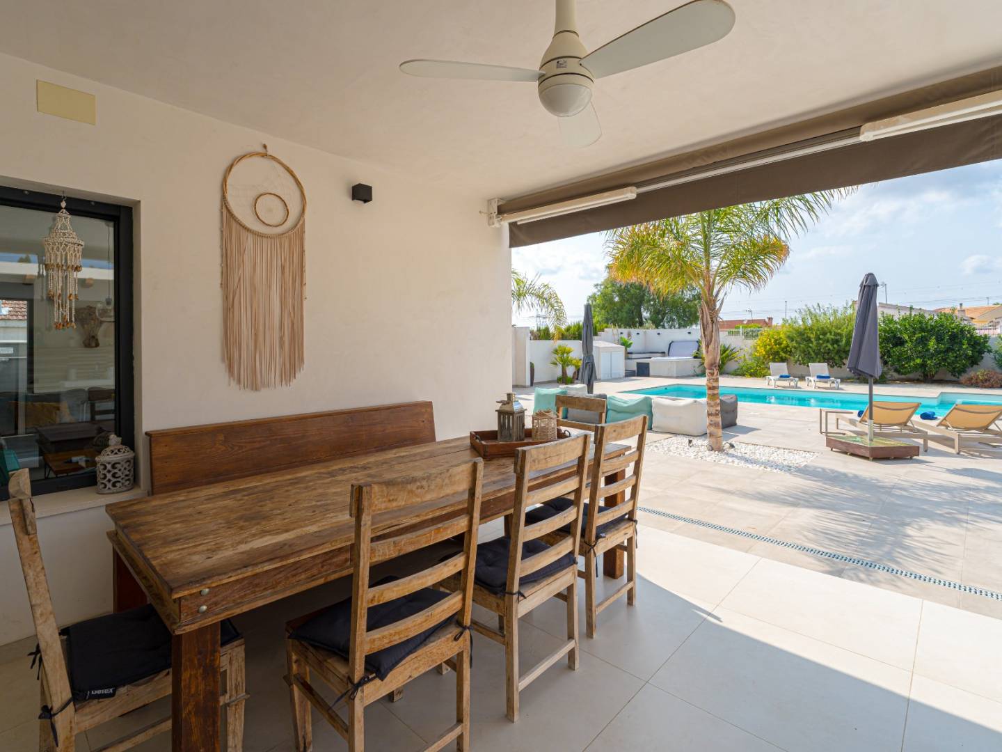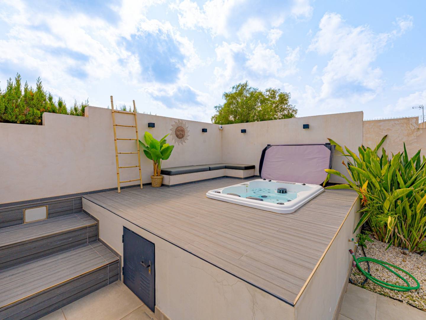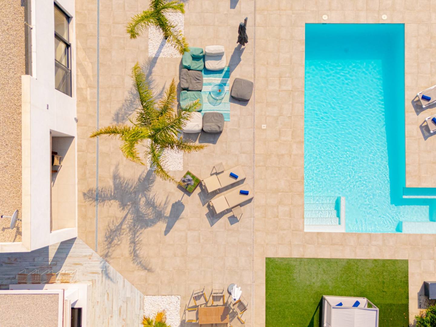 Das Anwesen ist eine wahre private Oase, die ganz dem Wohlbefinden gewidmet ist. Es umfasst einen großen privaten Pool , eine Außendusche , einen Whirlpool , weitläufige Terrassen und ein von Palmen und Obstbäumen umgebenes Solarium . Eine elegante Strandbar im mediterranen Stil mit Sommerküche, Grill und Abstellraum inklusive Badezimmer rundet diesen idealen Ort zum Entspannen und geselligen Beisammensein ab.
