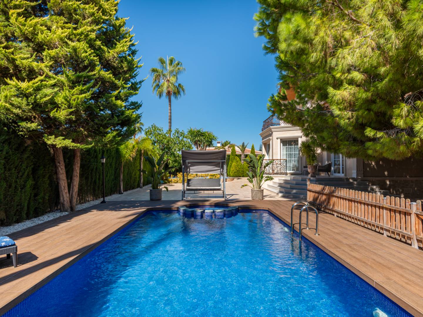 Wir freuen uns, Ihnen dieses wunderschöne Haus präsentieren zu dürfen, das sich im beliebten Viertel Doña Pepa Ciudad Quesada befindet und über 5 Schlafzimmer und 3 Badezimmer verfügt. Die Wohnfläche beträgt insgesamt 303m², inklusive einer 20m² großen Garage, und erstreckt sich über zwei Etagen. Beim Betreten gelangt man in eine offene Diele mit hellem und offenem Zugang zum Wohnzimmer mit hohen Decken. Im Erdgeschoss befinden sich außerdem 2 Doppelschlafzimmer und 1 Badezimmer. Das Wohnzimmer ist groß und luftig, mit direktem Zugang zu einer herrlichen Terrasse mit Blick auf den Garten. Auf dieser Etage befinden sich außerdem ein Hauswirtschaftsraum und der direkte Zugang zur Garage. Im Obergeschoss gibt es ein großes Ankleidezimmer, 3 geräumige Schlafzimmer und 2 Badezimmer, eines davon en suite. Das Haus ist mit integrierter Klimaanlage auf jeder Etage sowie Fußbodenheizung im gesamten Haus ausgestattet. Außenbereich Das Grundstück hat eine Fläche von 882m² und bietet einen Bereich mit einem Salzwasserpool (8×4m), eine Außenküche mit Grill sowie einen Kinderspielplatz. Es gibt reichlich Platz für mehrere Sitzbereiche und Sonnenliegen.