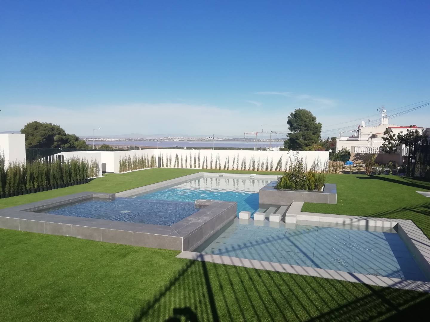 Die Außenbereiche dieser Wohnanlage sind so gestaltet, dass sie das mediterrane Klima optimal nutzen. Die Bungalows verfügen über private Terrassen, die sich perfekt zum Entspannen im Freien eignen. Darüber hinaus können die Bewohner ein Solarium genießen, das ideal zum Sonnenbaden in privater Umgebung ist. Die gemeinschaftlichen Gartenbereiche bieten einen grünen Raum zum Spazierengehen oder Ausruhen, während der Gemeinschaftspool und der Jacuzzi perfekt sind, um sich an heißen Sommertagen zu erfrischen und zu entspannen.