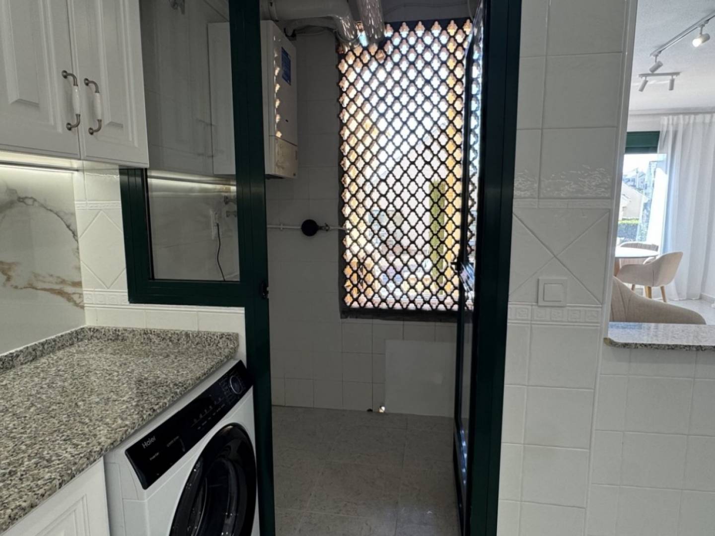 Dieses elegante , renovierte und nach Süden ausgerichtete Apartment befindet sich im renommierten Golfresort Lomas de Campoamor und vereint modernes Design , Komfort und Exklusivität in bester Lage an der Costa Blanca . Im Hochparterre gelegen, bietet es dank seines offenen Grundrisses viel Privatsphäre , außergewöhnlich viel Tageslicht und optimale Belüftung. Die 83 Quadratmeter große Wohnung verfügt über zwei geräumige Schlafzimmer und zwei moderne Badezimmer , eines davon mit einer stilvollen, begehbaren Dusche . Das helle Wohnzimmer mit Designermöbeln geht in eine moderne, voll ausgestattete Küche mit Induktionskochfeld und hochwertigen Geräten über. Bei der Renovierung wurden edle Materialien wie großformatige Porzellanfliesen und Natursteinelemente verwendet, die dem Apartment einen anspruchsvollen und zeitgemäßen Stil verleihen. Zu den weiteren Annehmlichkeiten gehören eine reversible Klimaanlage , eine Gaszentralheizung , ein Kombitherme , Schallisolierung , dezente LED-Ambientebeleuchtung und ein Sicherheitssystem . Das Gebäude verfügt über einen Aufzug , und die Wohnung wird komplett möbliert verkauft, inklusive Waschmaschine mit Direktantrieb, Smart-TV, Alarmanlage, Designermöbeln und Einbauschränken; sie ist sofort bezugsfertig. Die Immobilie befindet sich in einer sicheren Wohnanlage mit Gemeinschaftspool und gepflegten Gärten , in der Nähe mehrerer Golfplätze , und stellt eine einzigartige Investitionsmöglichkeit oder eine erstklassige Lage in einer der begehrtesten Gegenden der Costa Blanca dar.