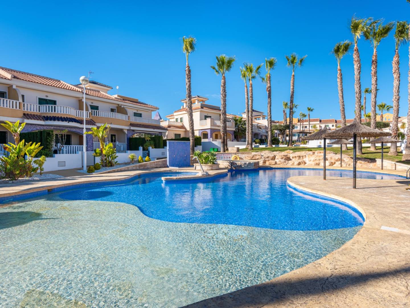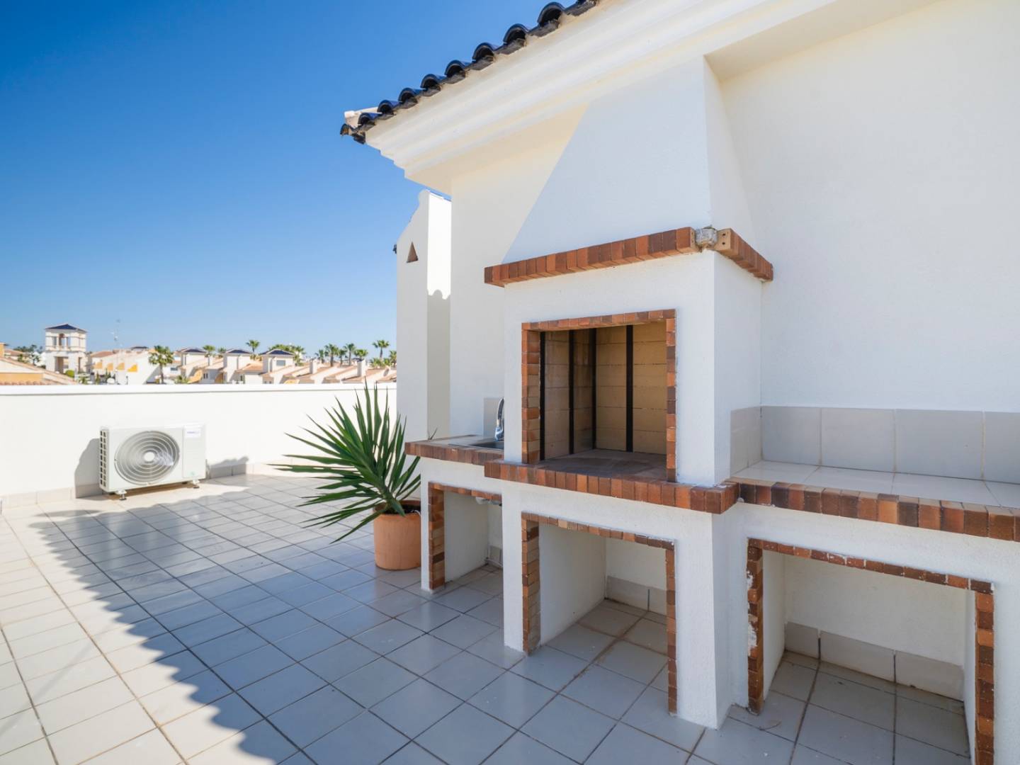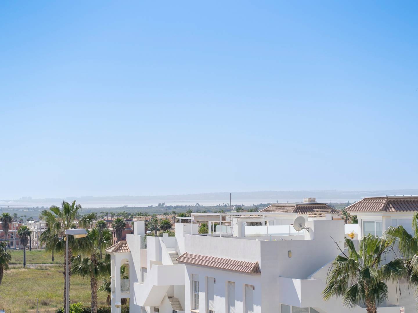 Entdecken Sie dieses elegante Penthouse-Apartment in einer prestigeträchtigen Residenz im begehrten Viertel Doña Pepa . Auf 79,27 m² bietet es zwei Doppelschlafzimmer mit Einbauschränken und zwei Badezimmer – ein komfortables und funktionales Wohnambiente. Das helle, offene Wohn-/Esszimmer mit amerikanischer Küche öffnet sich direkt zu einer großzügigen, nach Westen ausgerichteten Terrasse . Hier können Sie die Nachmittagssonne und das mediterrane Klima das ganze Jahr über genießen. Eine Außentreppe führt von der Terrasse zu einem spektakulären privaten Solarium mit Abstellraum und eingebautem Grill . Von hier aus genießen Sie einen atemberaubenden Blick auf die Salinen von Torrevieja und La Mata . Ein perfekter Ort zum Entspannen oder für gesellige Stunden mit Familie und Freunden. Das Apartment wird komplett möbliert und bezugsfertig verkauft und verfügt über einen privaten Parkplatz . Die Residenz bietet mehrere Gemeinschaftspools, ein Planschbecken, weitläufige Gärten und Parkplätze . Geschäfte, Restaurants und alle Dienstleistungen sind bequem zu erreichen. Eine hervorragende Gelegenheit als Hauptwohnsitz, Zweitwohnsitz oder Kapitalanlage an der Costa Blanca .
