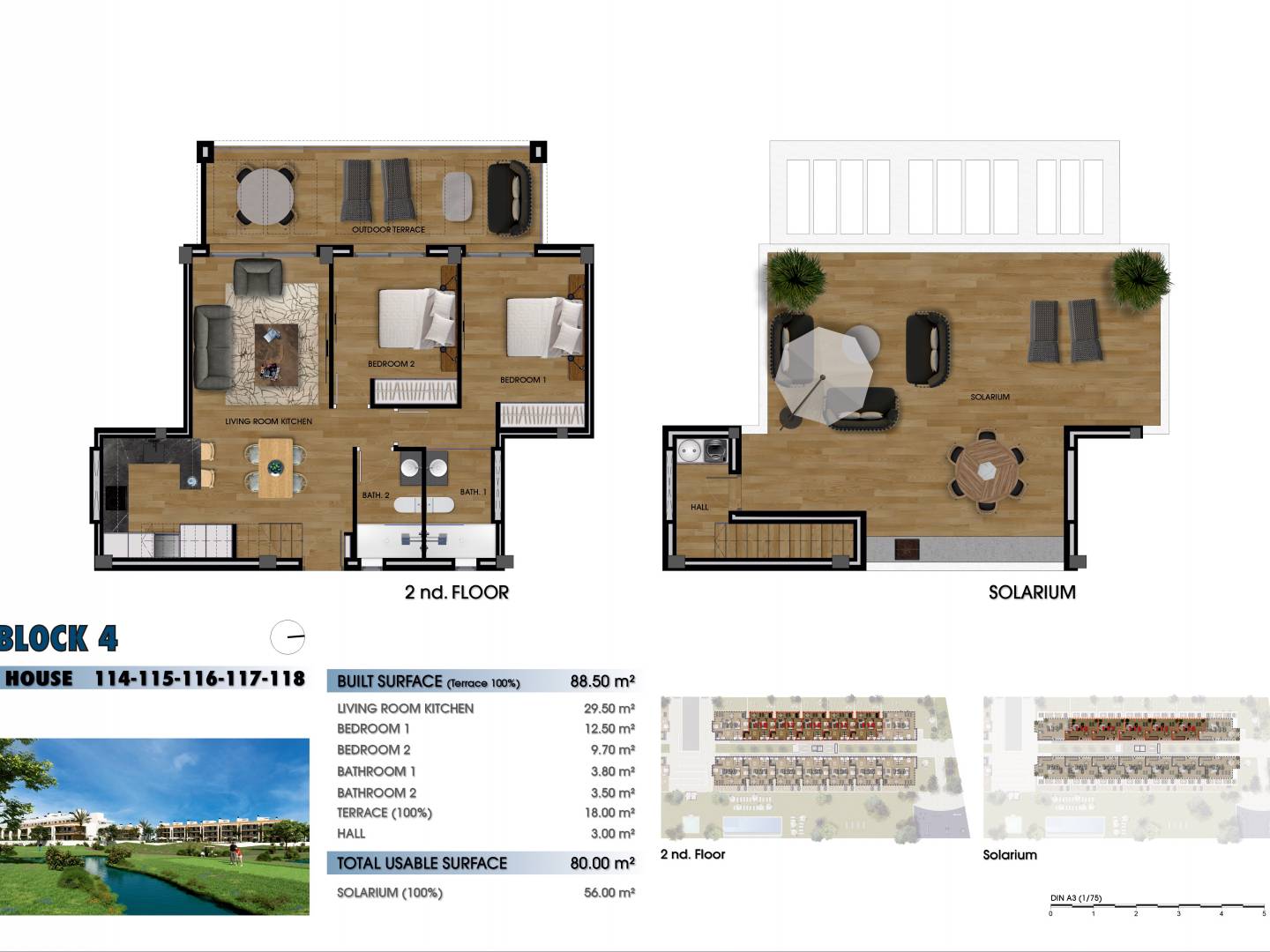 Jede Wohnung verfügt über zwei oder drei Schlafzimmer und zwei Badezimmer, die ausreichend Platz für Ihren Komfort bieten. Die Immobilien sind durch private Gärten und Terrassen ergänzt, die eine ideale Umgebung für Freizeitaktivitäten im Freien und Unterhaltung bieten. Die Innenräume verfügen über elegante Porzellanfliesen, die Stil mit einfacher Pflege verbinden, um eine anspruchsvolle, aber praktische Wohnumgebung zu schaffen.