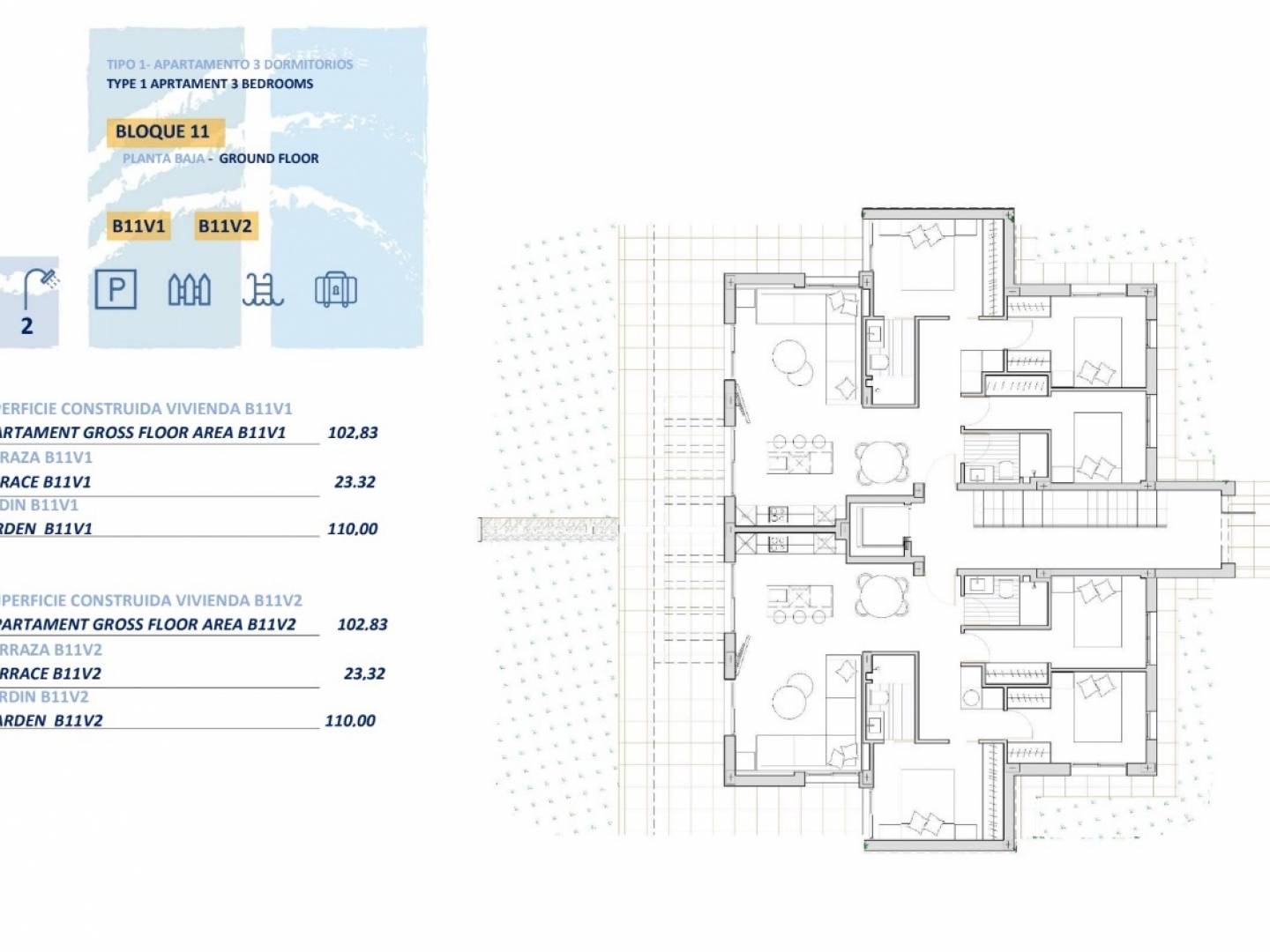 Die Apartments verfügen über zwei oder drei Schlafzimmer und zwei Badezimmer und bieten einen atemberaubenden Blick auf den großen See und die Grünanlagen dieses luxuriösen Resorts. Die Apartments im Erdgeschoss haben einen privaten Garten und eine Terrasse , die Apartments im ersten und zweiten Stock eine Terrasse , und das Penthouse besticht durch eine Terrasse und ein prächtiges Dachsolarium .