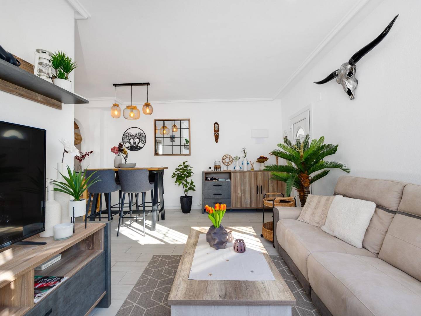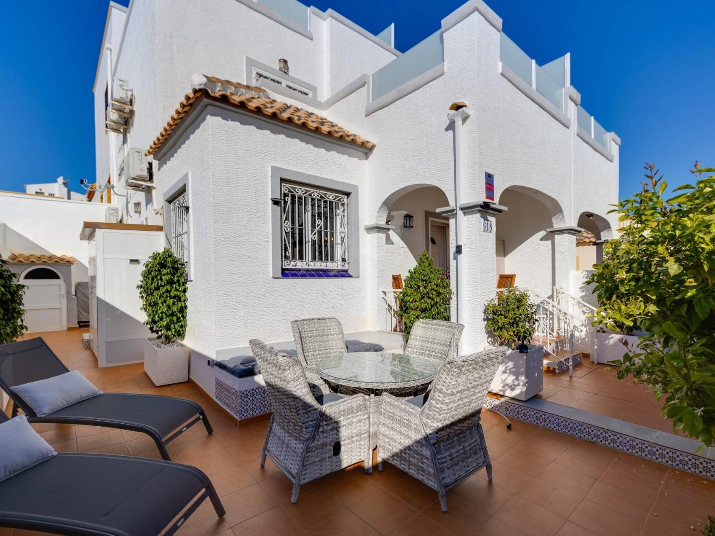 Wir präsentieren Ihnen dieses elegante Eckreihenhaus in Los Altos , ideal als Erst- oder Zweitwohnsitz an der Costa Blanca . Das komplett möblierte Haus verfügt über drei geräumige Schlafzimmer und zwei moderne Badezimmer und bietet Komfort und Funktionalität für die ganze Familie. Eine große private Terrasse lädt zum ganzjährigen Genießen des mediterranen Klimas ein. Eine einladende Veranda und eine private Zufahrt runden das Angebot ab. Zusätzlich gibt es einen Hauswirtschaftsraum und eine Speisekammer mit viel Stauraum. Im ersten Stock befindet sich eine große Terrasse zum Entspannen mit Zugang zu einem privaten Solarium mit atemberaubender Aussicht – ein absolutes Highlight. Die Anlage bietet Gemeinschaftspools , Grünflächen und kostenlose Padel-Tennisplätze für die Bewohner , nur 300 Meter vom Haus entfernt. Ein nummerierter privater Parkplatz sorgt für Komfort und Sicherheit. Die Lage ist hervorragend: nur 10 Minuten von Torrevieja entfernt und in unmittelbarer Nähe zu La Zenia mit seinen Stränden sowie allen Annehmlichkeiten, Restaurants und Einkaufsmöglichkeiten. Eine ideale Immobilienmöglichkeit an der Costa Blanca für alle, die Sonne, Ruhe, Privatsphäre und Lebensqualität suchen.