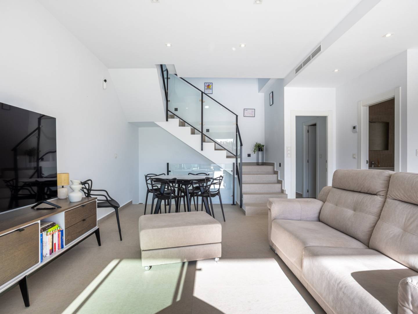 Entdecken Sie diese charmante, fast neue, freistehende Villa nach Architektenplan, die modernes Design, Energieeffizienz und hohes Investitionspotenzial perfekt vereint. Auf einem 238 m² großen, privaten Grundstück mit ca. 150 m² Wohnfläche gelegen, wurde dieses Anwesen so gestaltet, dass es maximales Tageslicht, ein großzügiges Raumgefühl und einen fließenden Übergang zwischen Innen- und Außenbereich bietet . Schon beim Betreten beeindruckt das elegante , offene Wohnzimmer mit seinen modernen Linien und großen Fenstern, harmonisch integriert in eine voll ausgestattete Küche mit hochwertigen Geräten – ideal für den Alltag und zum Bewirten von Gästen. Das Haupthaus verfügt über drei geräumige Schlafzimmer , zwei moderne Badezimmer und ein Gäste-WC , alle mit hochwertigen Materialien und viel Liebe zum Detail gestaltet. Darüber hinaus bietet das große, ausbaufähige Untergeschoss ein zusätzliches Schlafzimmer und vielfältige Nutzungsmöglichkeiten: Gästesuite, Fitnessraum, Heimkino oder Büro . Im Außenbereich erwartet Sie eine wahre Oase der Ruhe mit einem privaten 6 x 3 Meter großen Swimmingpool , großzügigen Terrassen und einem pflegeleichten Garten – perfekt, um den mediterranen Lebensstil in absoluter Privatsphäre zu genießen. Zum Anwesen gehören außerdem private Parkplätze . Ausgestattet mit einer zentralen Klimaanlage, elektrischen Jalousien und zwölf Solarmodulen garantiert es ganzjährigen Komfort und Energieeffizienz . Das Objekt wird komplett möbliert und mit einer touristischen Lizenz verkauft und stellt somit eine hervorragende Kapitalanlage mit hoher Rendite dar oder ist sofort bezugsfertig.