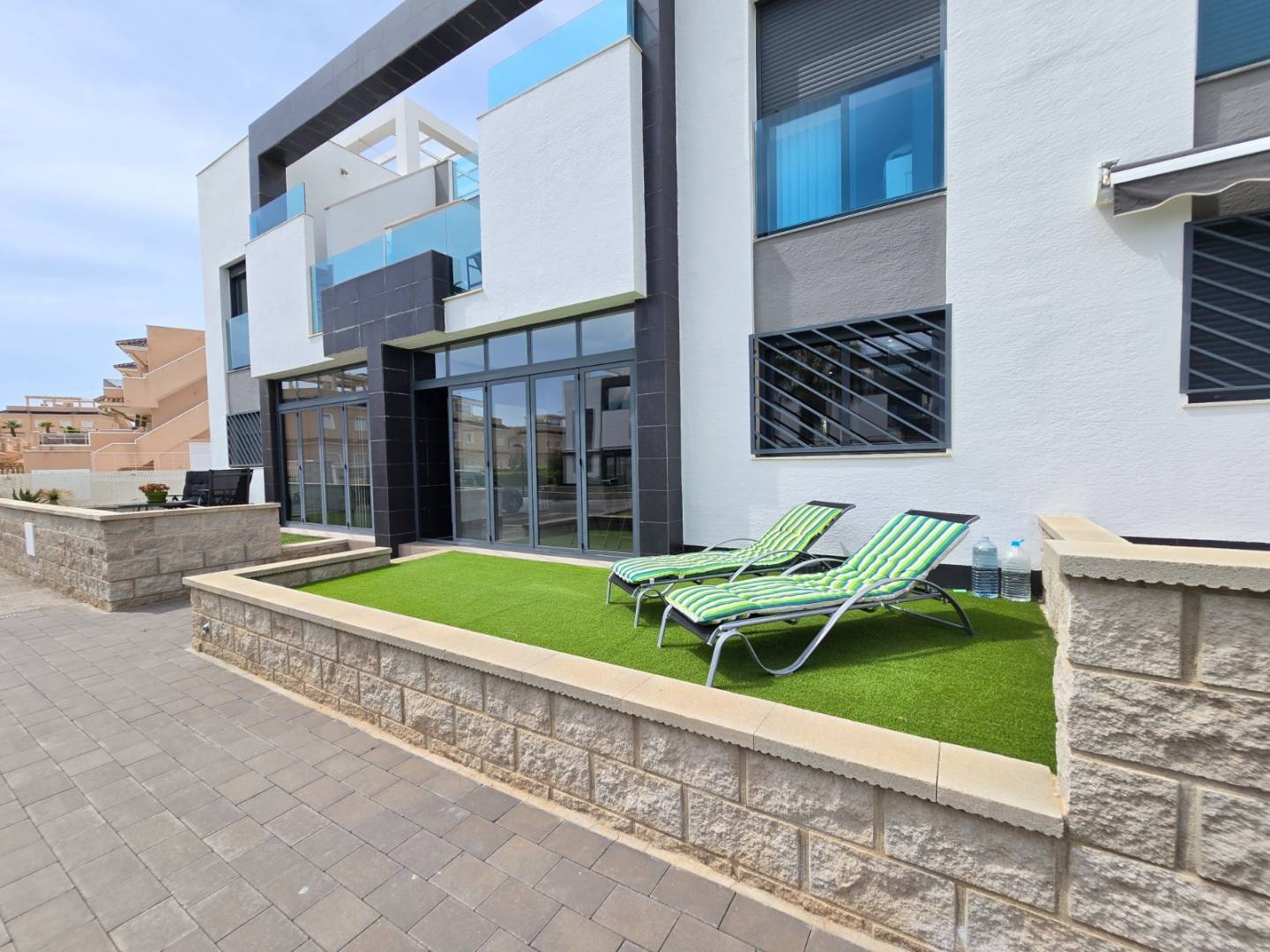 Entdecken Sie diese atemberaubende, moderne Erdgeschosswohnung in Punta Prima , einer der begehrtesten Gegenden der Costa Blanca . Die Nähe zum Meer und allen Annehmlichkeiten macht sie zu einer klugen Investition und einem idealen Wohnsitz. Diese elegante Wohnung verfügt über zwei geräumige Schlafzimmer und zwei moderne Badezimmer , die für optimalen Komfort konzipiert wurden – ob als Hauptwohnsitz , Zweitwohnsitz oder Kapitalanlage . Die voll ausgestattete offene Küche geht nahtlos in ein helles Wohn-/Esszimmer über und schafft so einen modernen und einladenden Raum. Die Wohnung ist mit Klimaanlage und Infrarotheizung ausgestattet und garantiert so ganzjährigen Komfort. Draußen erwarten Sie eine sonnige Terrasse und eine überdachte Terrasse mit Glasschiebetüren – perfekt zum Entspannen zu jeder Jahreszeit. Die Wohnung wird komplett möbliert verkauft und ist sofort bezugsfertig oder kann direkt zur Vermietung genutzt werden. Ein privater Parkplatz und ein Abstellraum sind ebenfalls inklusive. Die gepflegte Wohnanlage bietet einen Gemeinschaftspool und eine Boulebahn , sodass die Bewohner den mediterranen Lebensstil in vollen Zügen genießen können. Diese Immobilie bietet eine einzigartige Gelegenheit , ein modernes Apartment in Strandnähe in Punta Prima zu erwerben, wo Lebensqualität und erstklassige Lage perfekt harmonieren.