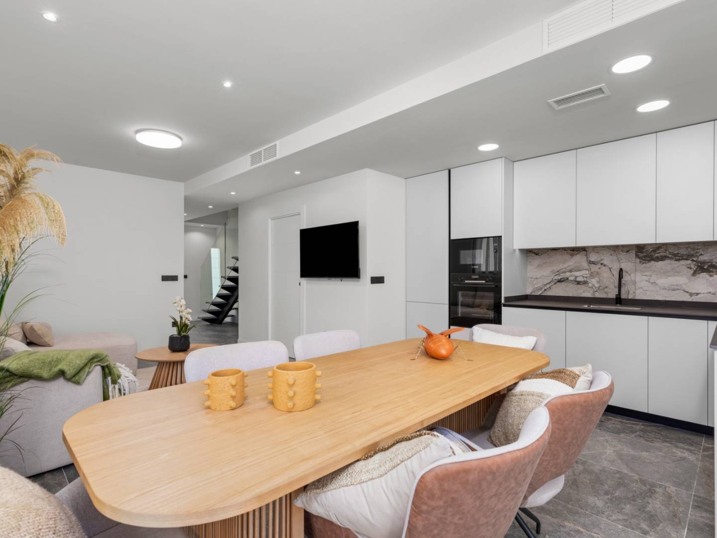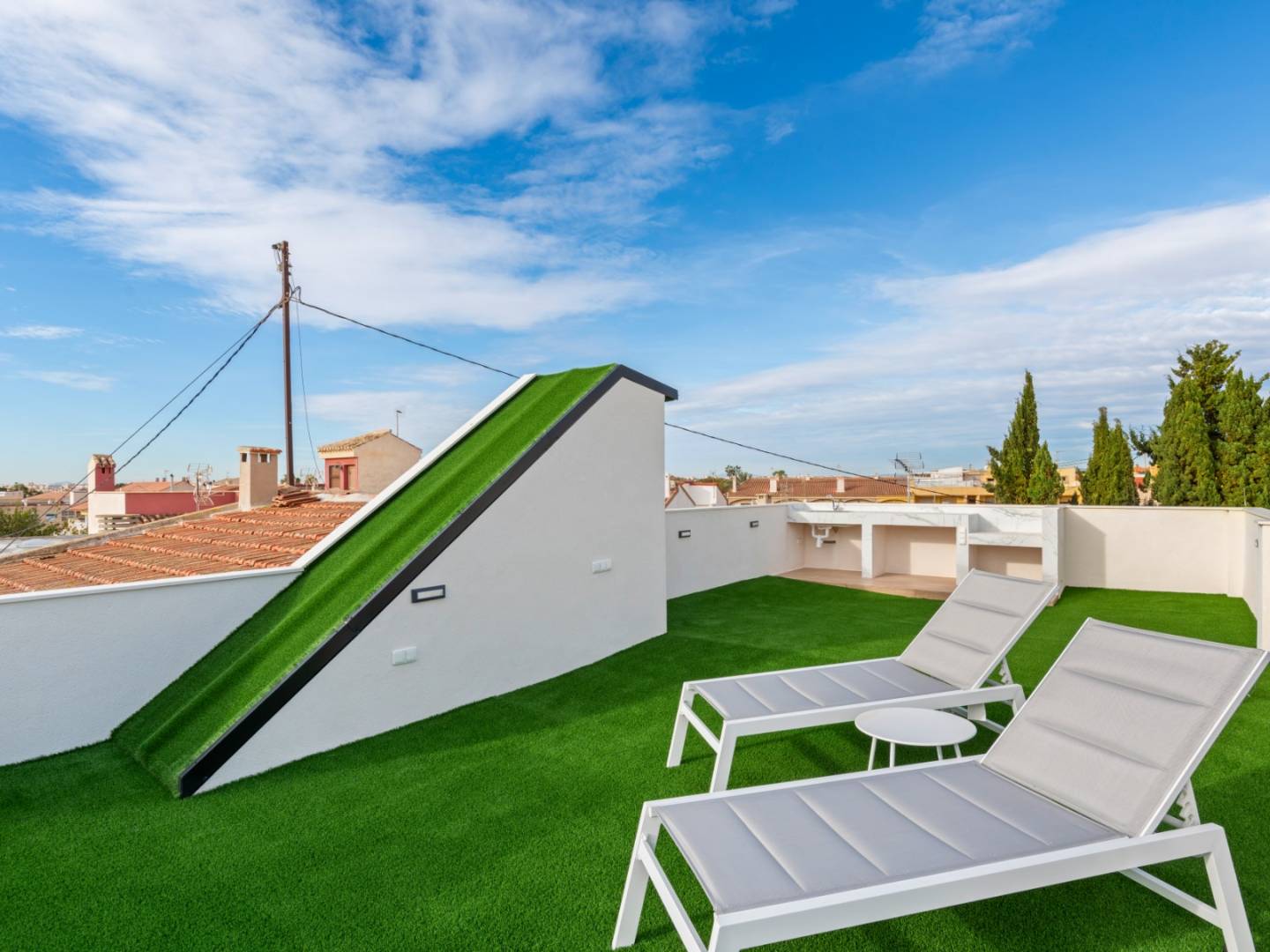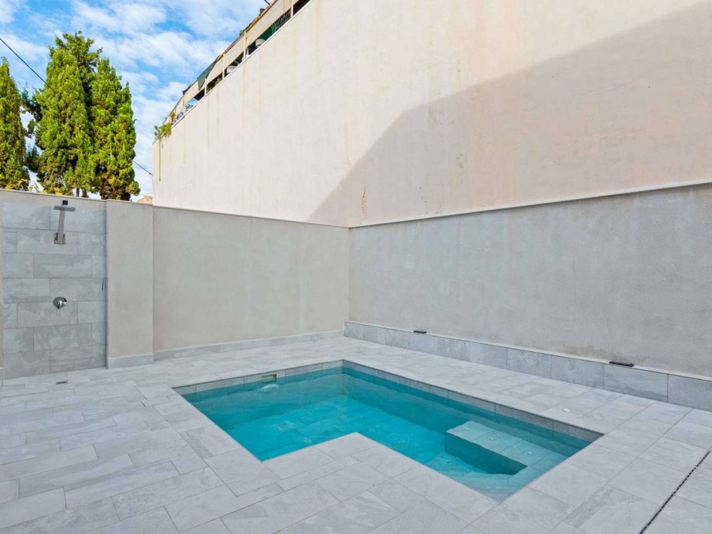 Entdecken Sie diese moderne, kürzlich renovierte Doppelhaushälfte im begehrten Viertel La Torre de la Horadada , nur wenige Schritte vom Meer entfernt. Das Anwesen besticht durch sein zeitgenössisches Design mit vier Schlafzimmern und drei Badezimmern , die alle auf optimalen Komfort und Eleganz ausgelegt sind. Die offene Küche mit angrenzendem Wohnbereich schafft einen großzügigen und hellen Wohnraum, ideal für den Alltag und zum Bewirten von Gästen – eine harmonische Verbindung von Stil und Funktionalität. Draußen bieten eine herrliche private Terrasse und ein spektakuläres Solarium mit Meerblick dank der exzellenten Südwestausrichtung den perfekten Rahmen, um das mediterrane Klima das ganze Jahr über zu genießen. Die Villa ist komplett möbliert und klimatisiert und somit bezugsfertig. Ein exklusiver privater Swimmingpool , ein Parkplatz und ein Abstellraum sorgen für zusätzlichen Komfort und Wertsteigerung. Die erstklassige Lage in Strandnähe und in unmittelbarer Nähe zu allen Annehmlichkeiten macht diese Immobilie zu einer einzigartigen Gelegenheit – ob als Hauptwohnsitz oder als Kapitalanlage. Ein Haus, das Design, Lage und Exklusivität in einer der begehrtesten Gegenden der Costa Blanca vereint.