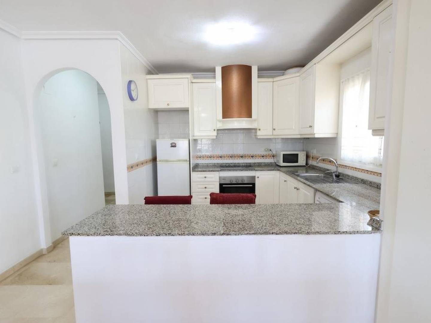 Playa Flamenca Residencial Jumilla III, Erdgeschosswohnung von 95 m2 gebaut Es verfügt über 2 Schlafzimmer (1 en suite), 2 Badezimmer, großes Wohnzimmer mit offener Küche und Terrasse, die vom Wohnzimmer aus zugänglich ist. Das Haus wird möbliert und mit Klimaanlage verkauft. Hat große Grünflächen, Gemeinschaftsparkplätze und einen schönen Gemeinschaftspool.