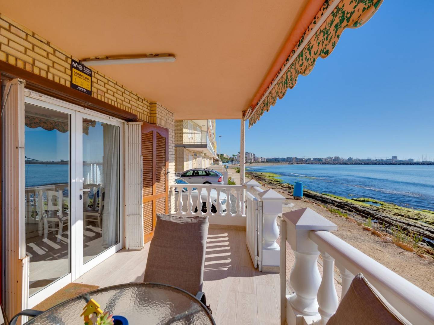 Entdecken Sie dieses traumhafte Erdgeschossapartment direkt am Meer , nur 50 Meter vom Playa de los Náufragos entfernt, einer der begehrtesten Lagen der Costa Blanca. Dieses elegante Apartment bietet dank des atemberaubenden Meerblicks vom Wohnzimmer und der Küche ein einzigartiges Wohnerlebnis und schafft eine unvergleichliche Verbindung zum Mittelmeer. Das Apartment verfügt über einen separaten Eingang , der Privatsphäre und Komfort garantiert, sowie über eine charmante private Terrasse/Veranda , die sich ideal zum Sonnenbaden das ganze Jahr über eignet. Es umfasst ein geräumiges Wohn-/Esszimmer , eine moderne offene Küche , drei Doppelschlafzimmer und ein Badezimmer – alle mit lichtdurchfluteten Außenbereichen und traumhaftem Ausblick. In einem sich rasant entwickelnden Gebiet gelegen, befindet sich die Immobilie in der Nähe von Supermärkten, Restaurants und anderen Annehmlichkeiten . Dank der hervorragenden Anbindung an die N-332 erreichen Sie schnell exklusive Viertel wie Punta Prima und La Zenia . Die nur 5-minütige Entfernung nach Torrevieja ist ein weiterer Pluspunkt. Eine einmalige Gelegenheit für alle, die eine hochwertige Immobilie direkt am Strand suchen, sei es als Hauptwohnsitz, Kapitalanlage oder Ferienhaus.