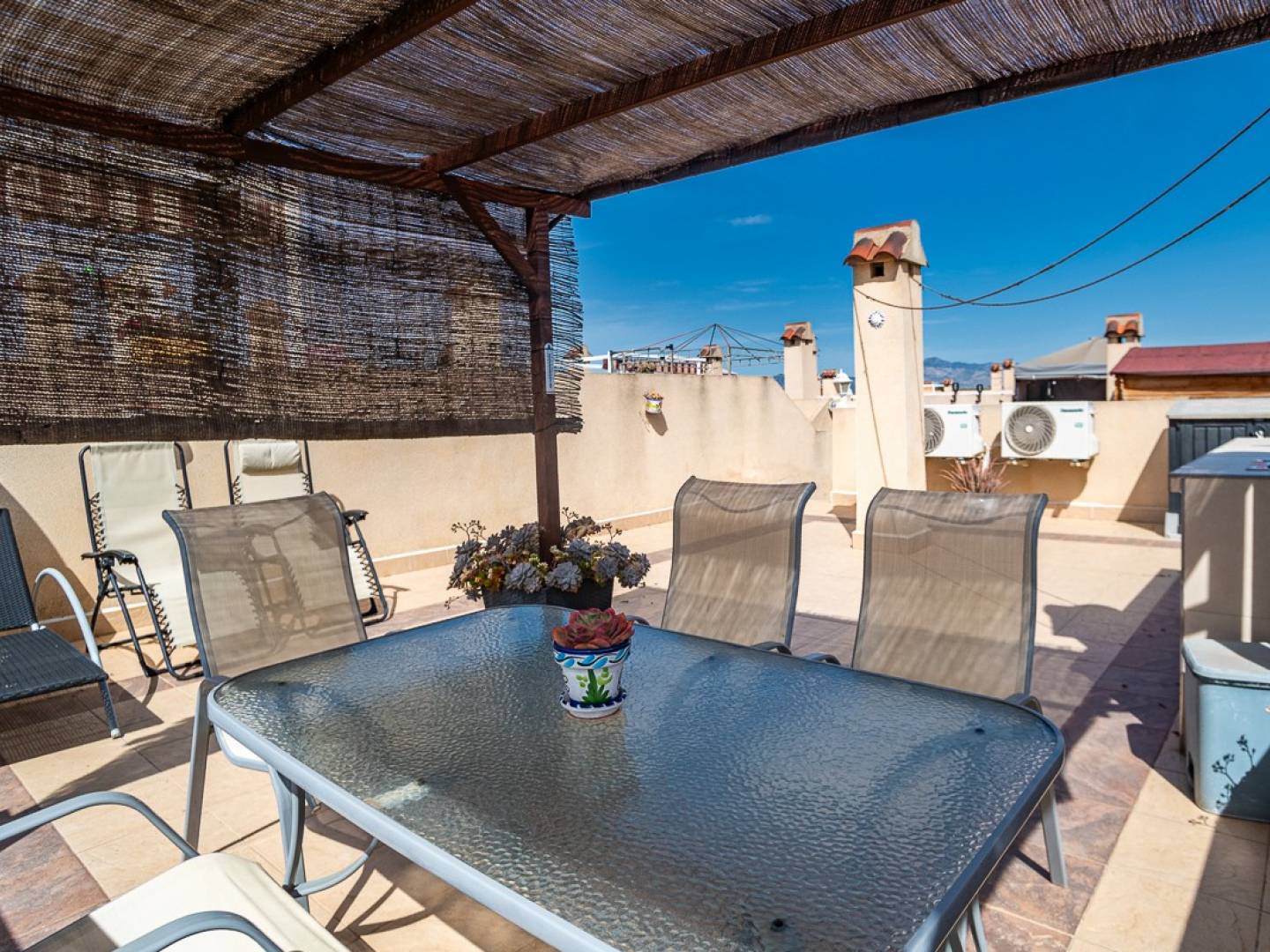 Suchen Sie eine bezugsfertige Wohnung unter der spanischen Sonne? Dann ist diese gemütliche Wohnung in La Matanza genau das Richtige für Sie. Das Haus verfügt über 2 komfortable Schlafzimmer und 1 komplett renoviertes Badezimmer im modernen Stil. Die Küche ist gut gepflegt und mit allen notwendigen Geräten ausgestattet, sodass Sie sofort loslegen können egal ob für den täglichen Gebrauch oder für die Ferienvermietung. Darüber hinaus ist eine Klimaanlage vorhanden, die sowohl in den warmen Sommermonaten als auch in den milderen Wintern für ein angenehmes Raumklima sorgt. Ein absolutes Highlight dieser Wohnung ist das private Solarium mit Außenküche. Hier können Sie das mediterrane Lebensgefühl in vollen Zügen genießen: Frühstück in der Sonne, gemütliche Abendessen mit Freunden oder einfach nur Entspannung mit einer wunderschönen Aussicht. Als zusätzliches Plus gibt es auch einen Gemeinschaftspool, der sich ideal zum Abkühlen und Genießen des spanischen Lebensstils eignet. La Matanza ist ein ruhiges und authentisches Viertel in der Gemeinde Orihuela, das im Landesinneren an der südlichen Costa Blanca liegt. Hier erleben Sie das wahre Spanien: Ruhe, Weite und Natur, fernab vom Trubel der Küste und doch nur eine kurze Autofahrt von Stränden, Golfplätzen und allen Annehmlichkeiten entfernt. Die Region ist bekannt für ihre wunderschönen Landschaften, Zitrusplantagen und Panoramablicke. Gleichzeitig befinden Sie sich innerhalb von etwa 2025 Minuten an der Küste von Guardamar oder Torrevieja, wo Sie Strände, Restaurants und Geschäfte genießen können. La Matanza ist ideal für alle, die einen entspannten Lebensstil in authentischer Umgebung suchen und dabei auf jeglichen Komfort verzichten möchten.