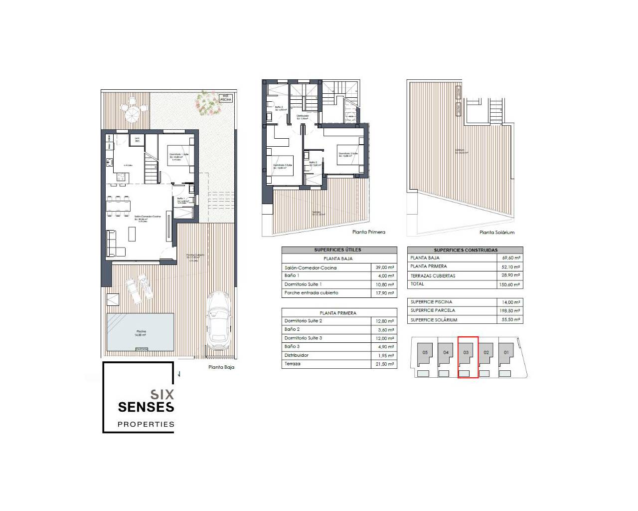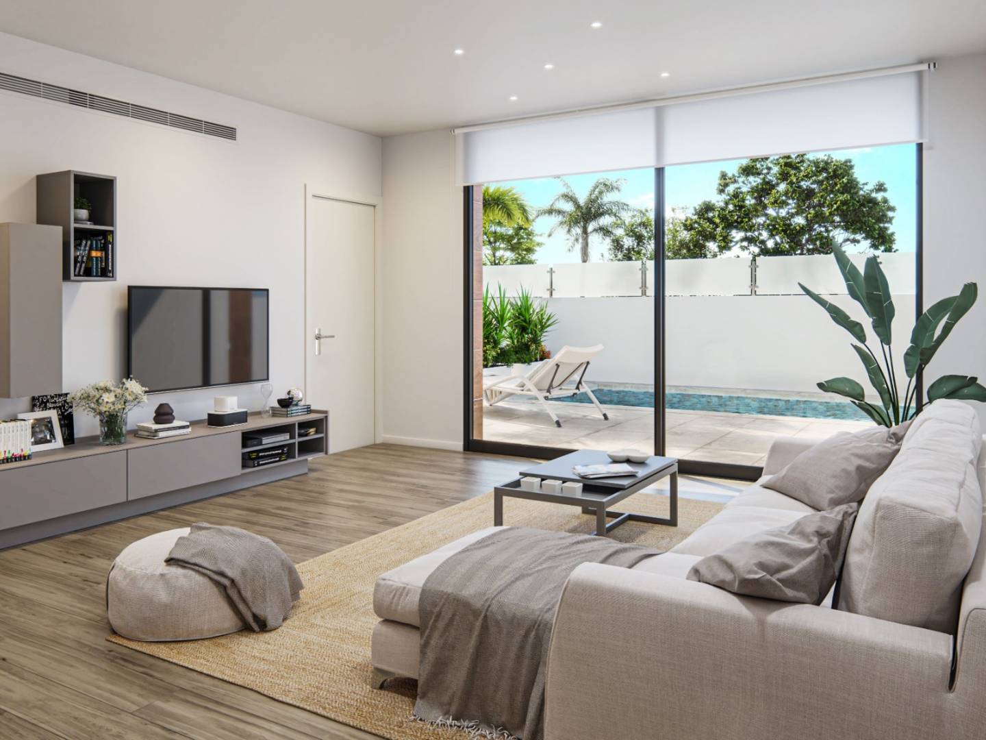 Beautiful villa of modern design, very close to all essential services; beaches, golf courses, shopping centres, hospitals, schools, Alicante airport... The property has 3 spacious bedrooms and 3 bathrooms, with the possibility of extending 1 bedroom and 1 bathroom in the basement. The property has an entrance porch of 18 m2 and covered terraces of almost 30 m2. Private swimming pool of 14 m2, 3x5 metres with salt chlorination system, waterfall and pre-installation for heat pump. If we want to enjoy a bigger pool, it is possible paying an extra. The villa is situated in a privileged location, only 800 metres from one of the most beautiful beaches and with the most vegetation of the Mediterranean coast. The 18-hole golf course of La Marquesa, which has been awarded international prizes for its design, is only 10 minutes away. As well as the shopping centres of Habaneras and La Zenia Boulevard, 10 and 20 minutes away respectively.