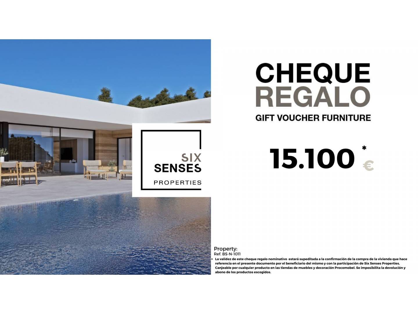 At Six Seconds Properties we help you to turn your new property into the home of your dreams, giving you a gift voucher for €15,100 worth of furniture and a technical visit of the property, where our technical team will advise you on the possibilities of improving the property. Totally free of charge!