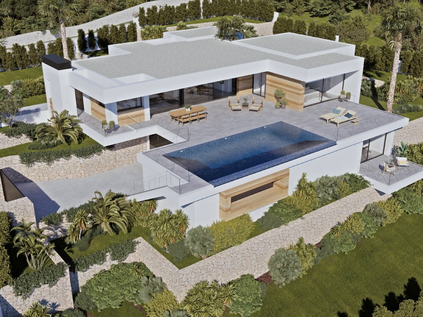 A development made up of 7 plots located in Benissa, selected for their location, orientation and sea views, in which villas have been planned adapted to each one of them, exclusive designs with their own character, integrated into the surroundings and designed to enjoy the sea views and the mild Mediterranean climate.