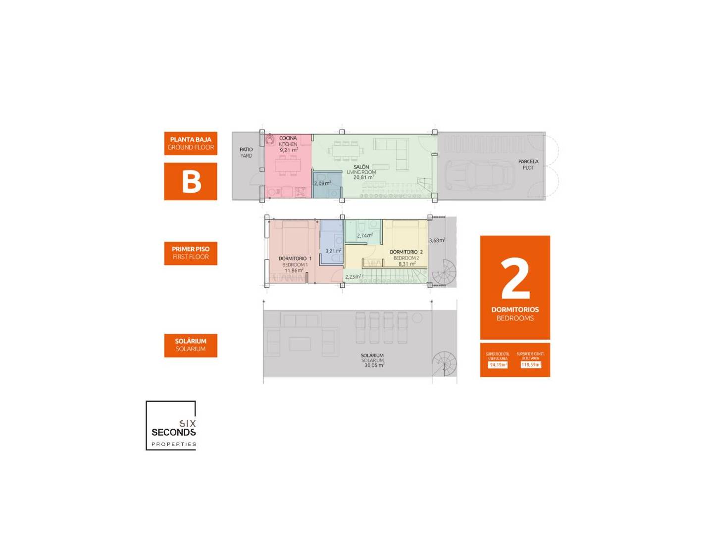 This model has two interior distribution options, with up to 3 bedrooms and a solarium terrace with private access from the house.