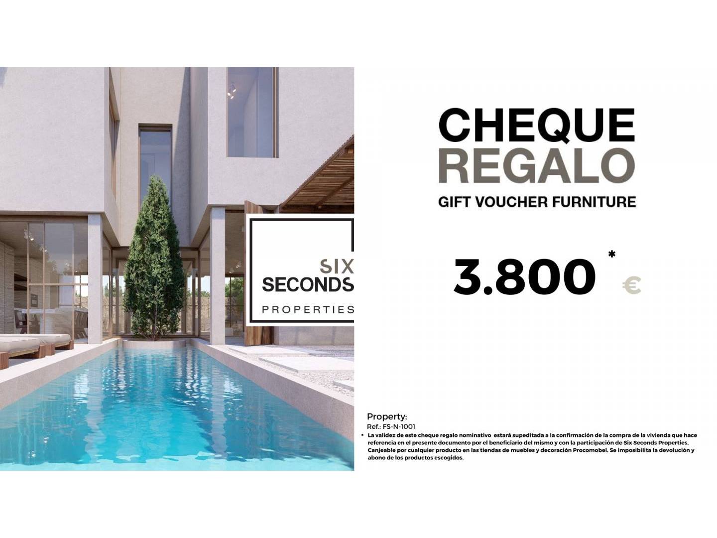 From our real estate agency we help you turn your new property into the house of your dreams, giving you a gift voucher worth € 3,800 worth of furniture and a technical visit to the property by the design department, where our technical team will advise you on the possibilities of improvement and decoration of your property. Totally free!!