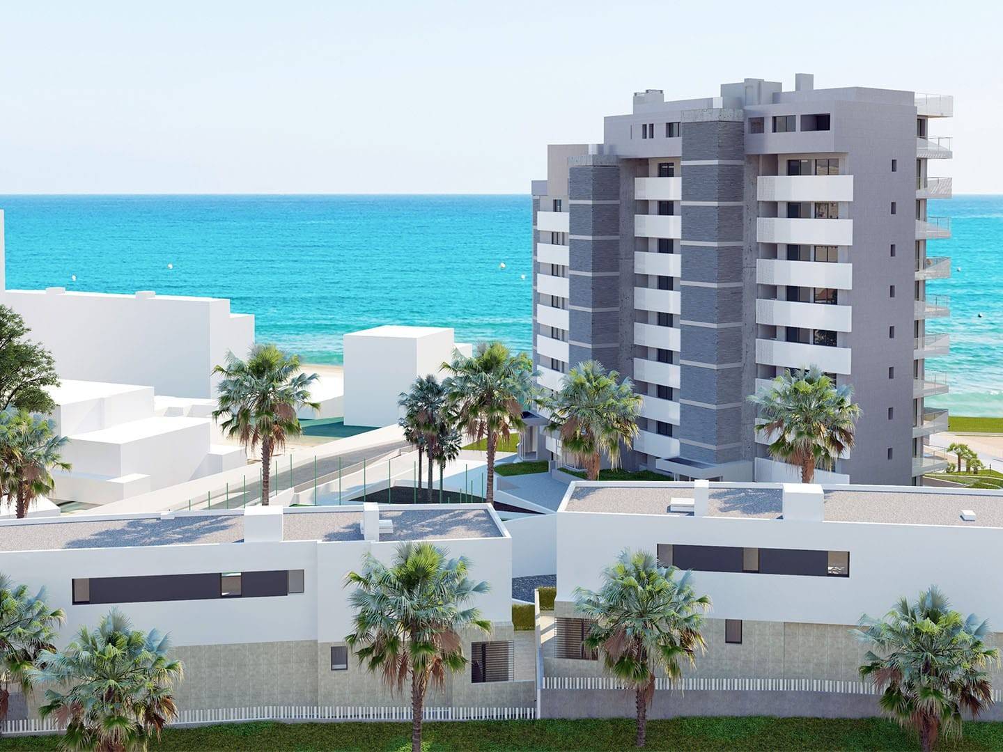 But hurry up! Currently there are only a few villas available, both with 3 bedrooms and 4 bathrooms, with garden and direct access to the promenade and the beach. The properties are available to move into immediately.