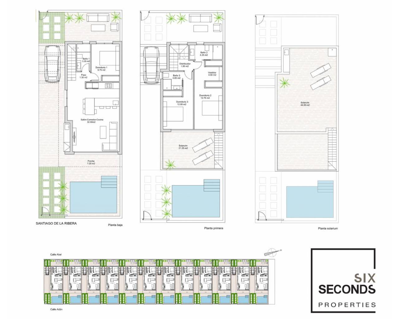 We present a development of duplex villas, each with its own independent swimming pool and only 850 metres from the beach in Santiago de la Ribera (Murcia).