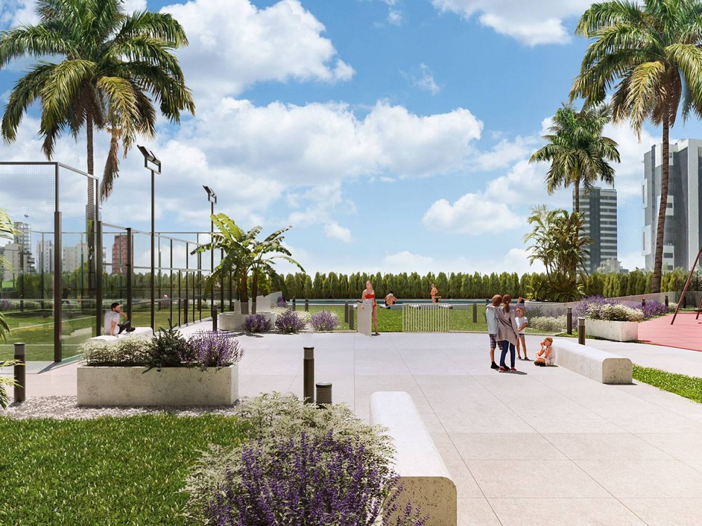 It has a fantastic swimming pool, perfect for enjoying a refreshing dip during warm summer days, a paddle tennis court, gym, calisthenics area, paddle tennis and children's games in spacious common areas.