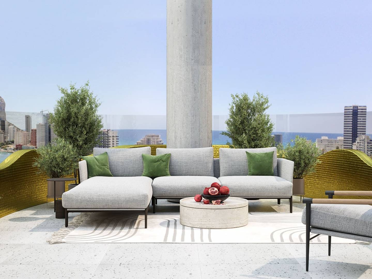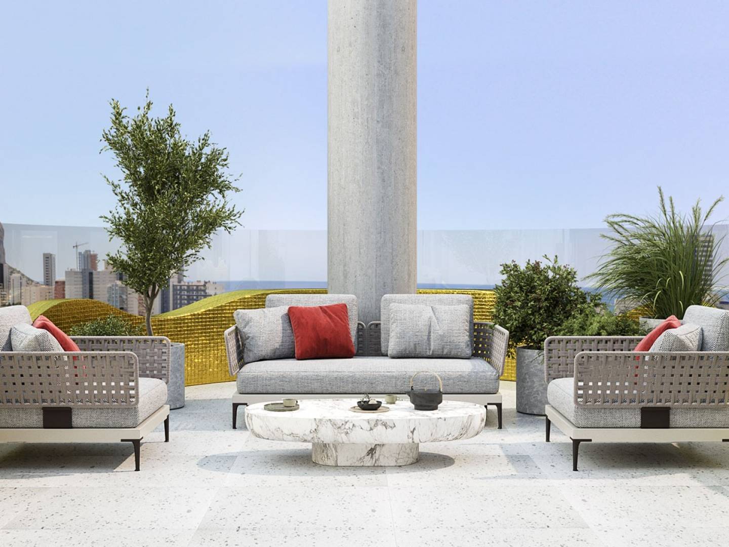 Exclusively designed apartment with large terraces and sea views. Each home has a large terrace, a circular view of all the best of Calpe: the Arenal beach, the Fossa beach, the Las Salinas lagoon, and of course the impressive Peñón de Ifach.
