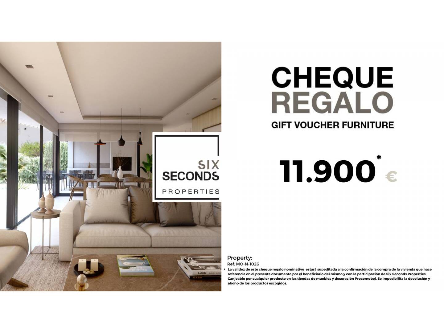 At Six Seconds Properties, we help you transform your new property into your dream home by giving you a €11,700 furniture gift voucher and a free property inspection , where our technical team will advise you on potential improvements. Completely free!