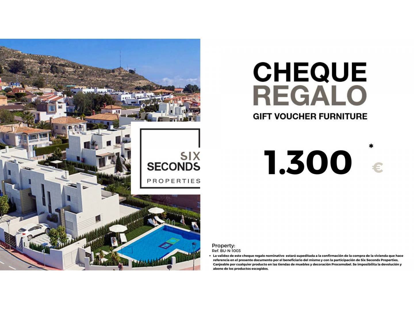 At Six Seconds Properties we help you turn your new property into the home of your dreams, giving you a gift voucher for furniture for an amount of €1,300 and a technical visit to the home, where our technical team will advise you on the possibilities of improving the home. the House. Totally free !!