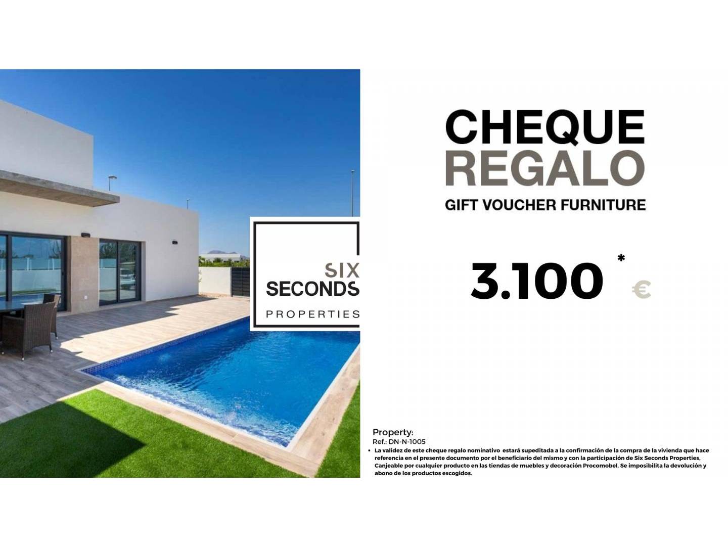 At Six Seconds Properties we help you turn your new property into the home of your dreams, giving you a gift voucher for furniture worth €3,100 and a technical visit to the property, where our technical team will advise you on the possibilities of improving the home. Totally free!