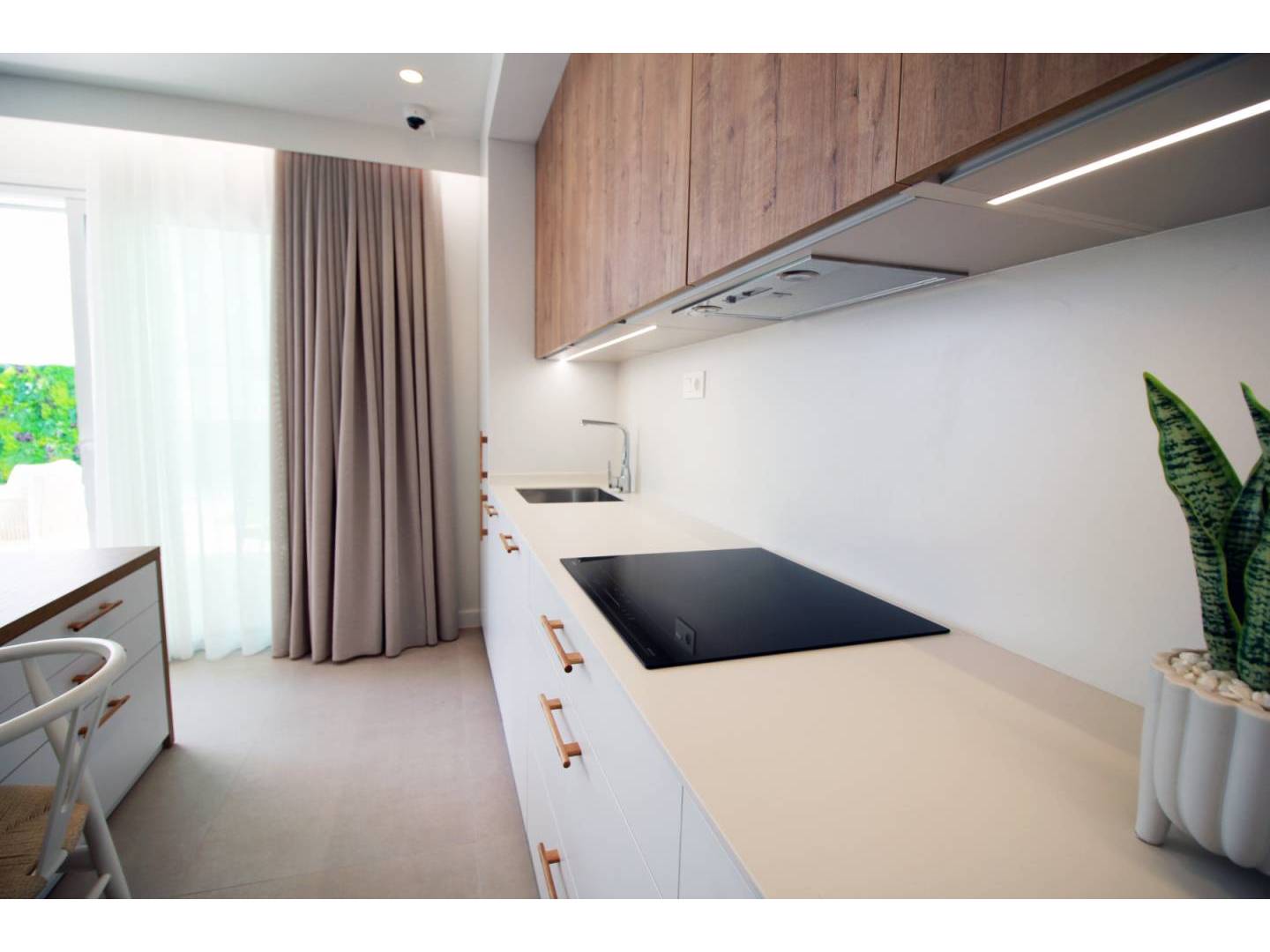 Here you can choose between ground floor with garden, and first floor with solarium, built to a high standard and of very good quality. All apartments have an open plan between the living room and kitchen. They have their own private pool and parking.