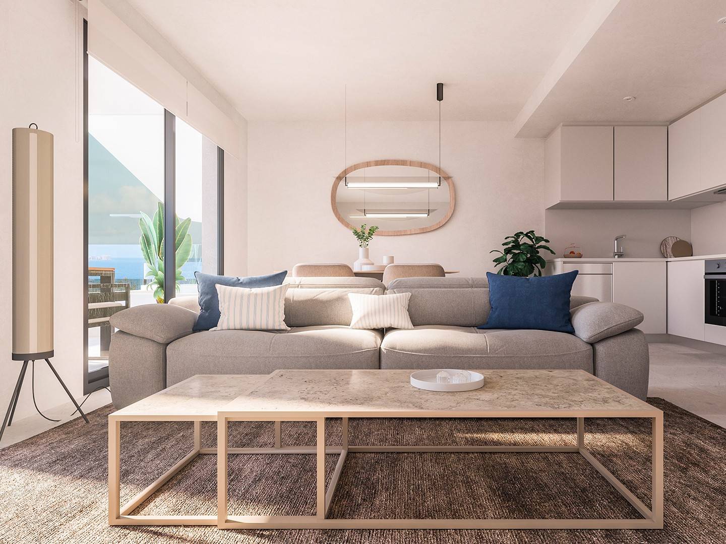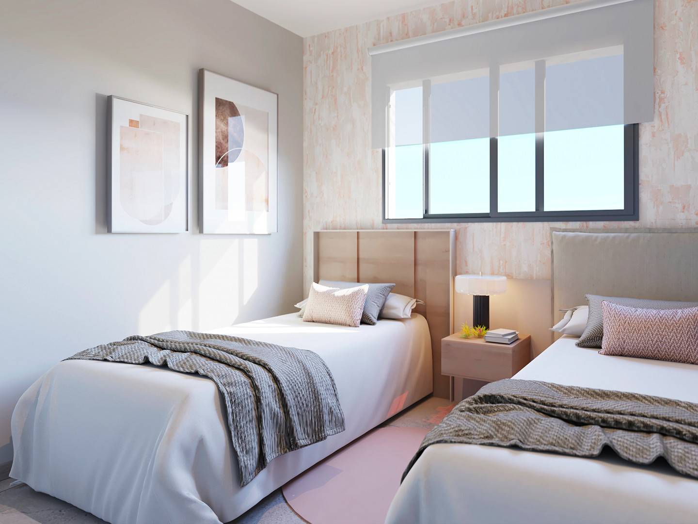 The residential will be made up of homes with 2 and 3 bedrooms and 2 bathrooms with a parking space and storage room . It will also have incredible common areas on the roof with 360º views from which you can enjoy a swim in its infinity pool or the calm of its chillout area while you watch the sunset. In addition, all homes will have a private terrace or garden, in the case of those on the ground floor, in which a private pool can be built.