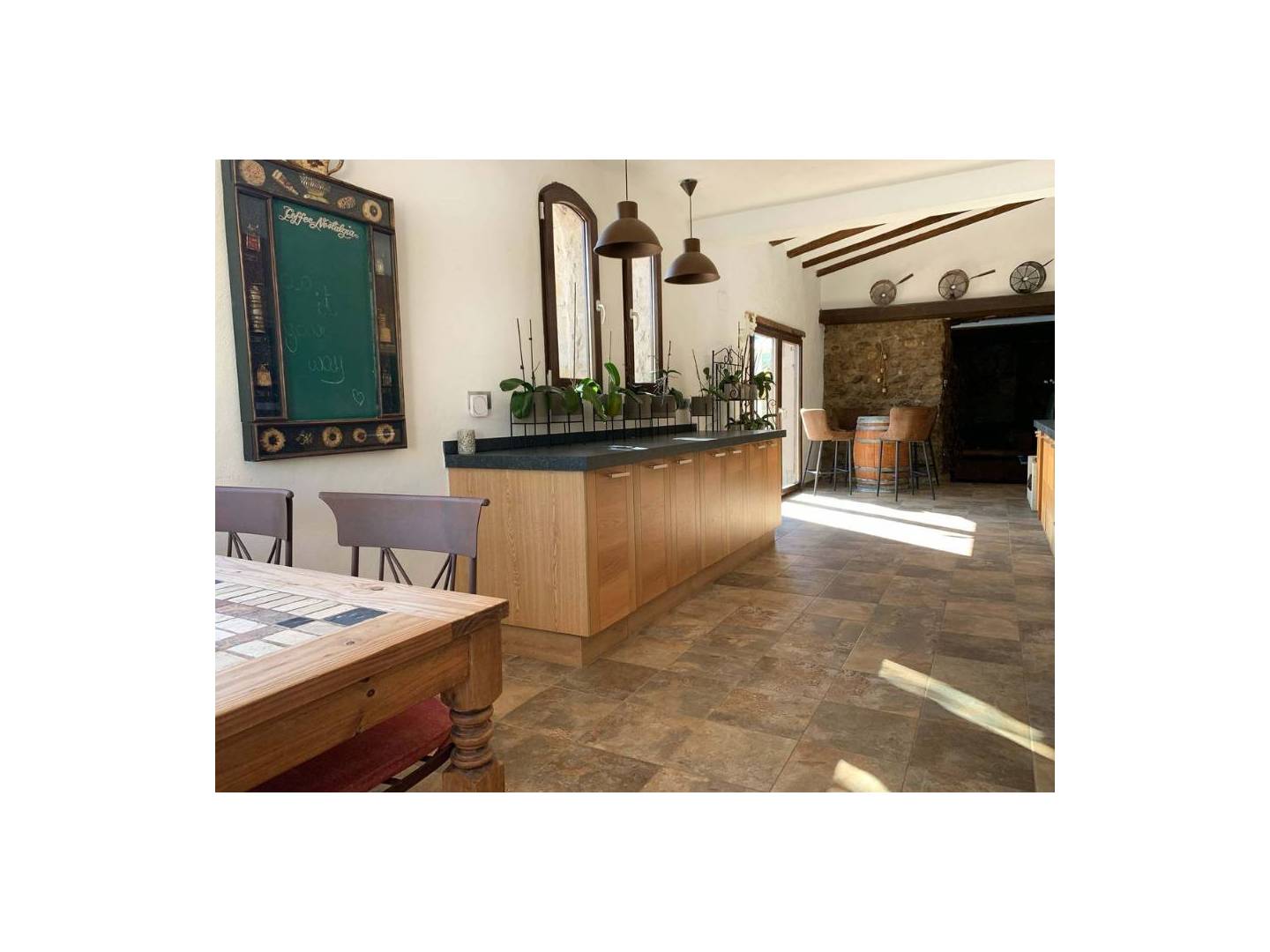 Outside, you will find a beautiful low maintenance garden with olive and palm trees , a spacious terrace, a large covered terrace (naya) and a fantastic swimming pool complete with its own waterfall . There is ample parking and a carport . You can enjoy mountain views from the property which is south facing and fully fenced.