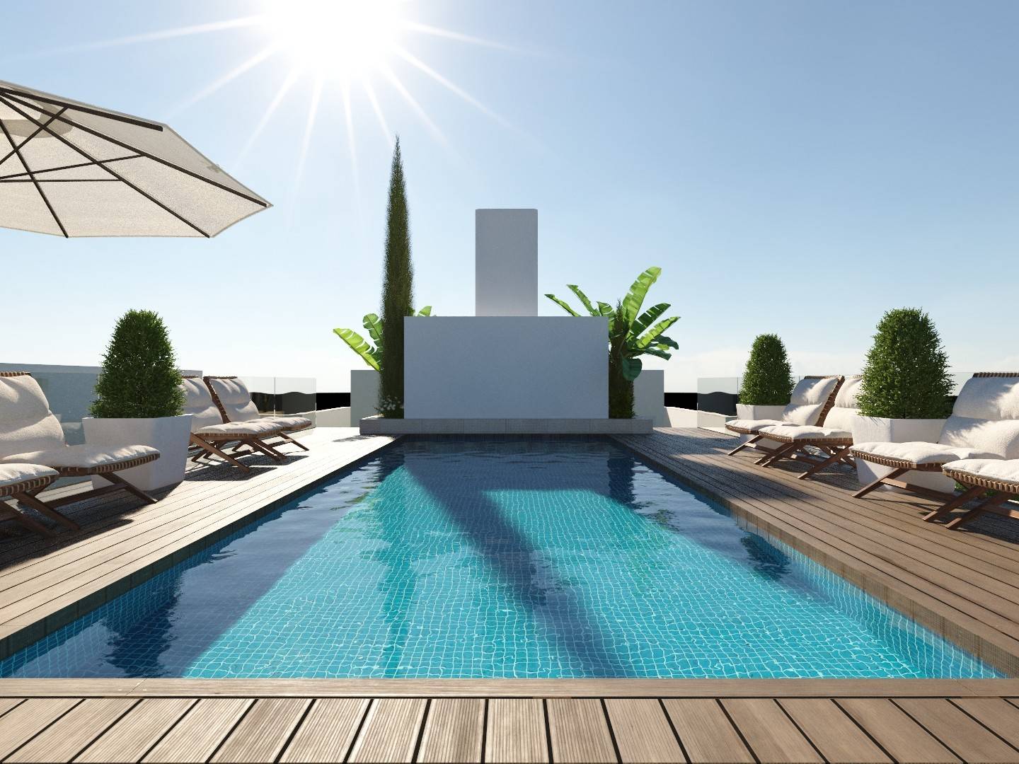 The apartments are designed to offer maximum comfort and functionality. Each one of them consists of 3 bedrooms, 2 bathrooms , a kitchen equipped with an island and a pantry closet, a laundry room, a spacious living room and spacious terraces where you can enjoy the outdoors and the views.