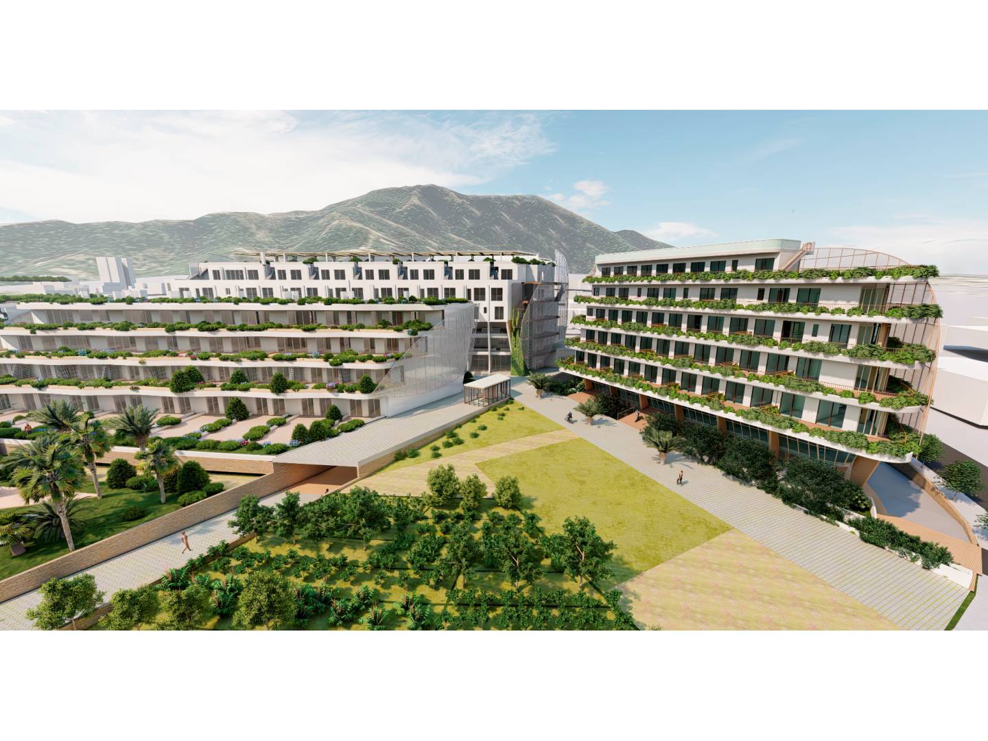 Something that also makes the complex a unique place is that, surrounding the buildings, and on the different levels of the interior development, there will be different sheets of ornamental water and several pools. Likewise, you will also have a fantastic heated indoor pool. So it will be an interior oasis next to the Natural Park.