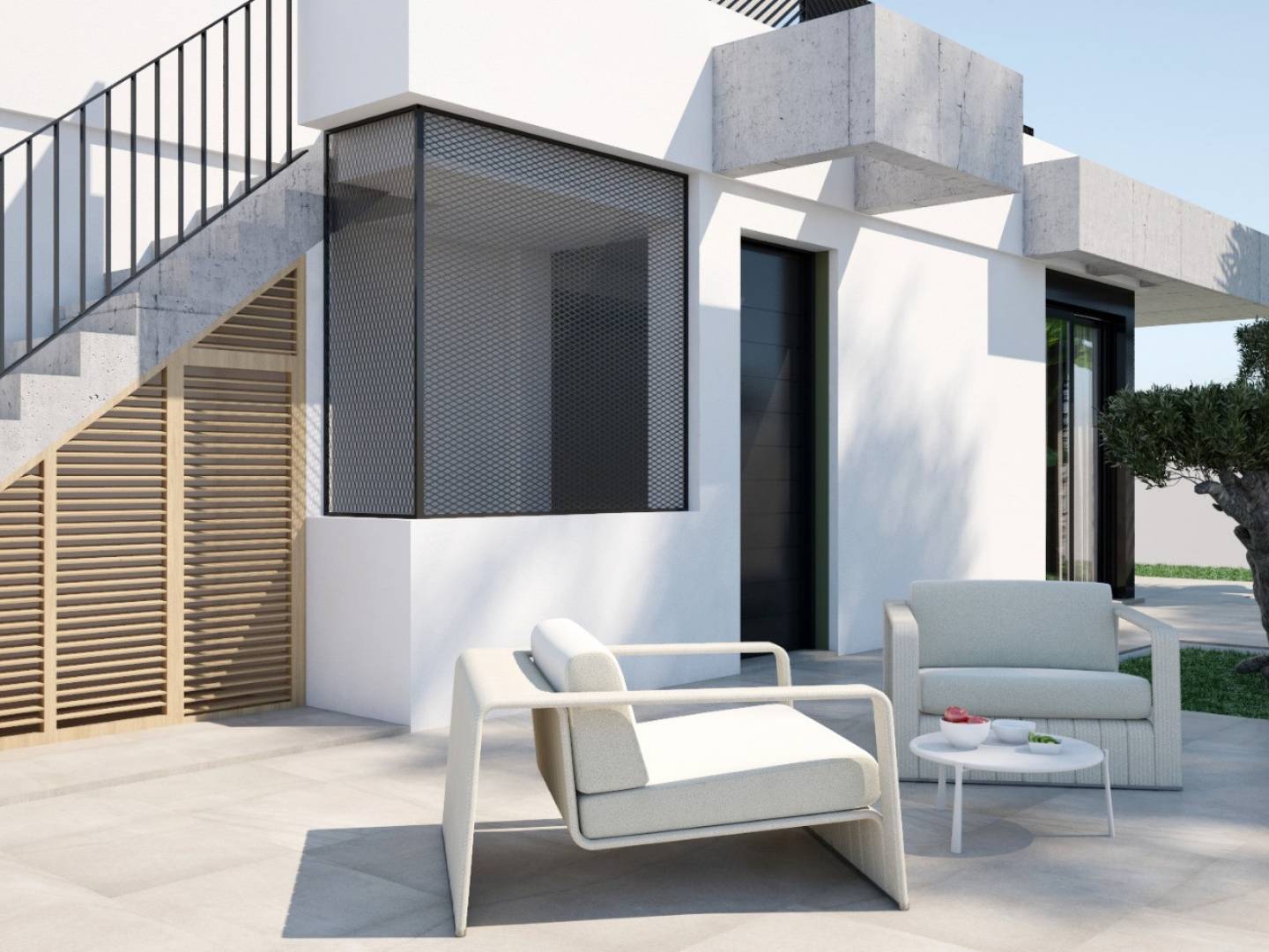Harmoniously distributed, it has three bright bedrooms, a modern American kitchen that merges with the living-dining room, and two high-quality bathrooms. The villa has a great advantage: all its rooms are distributed on a single floor, which makes everyday life easier. In addition, it offers a relaxing garden space on a 220 square meter plot and the possibility of adding a solarium and a private pool for a superior luxury experience.