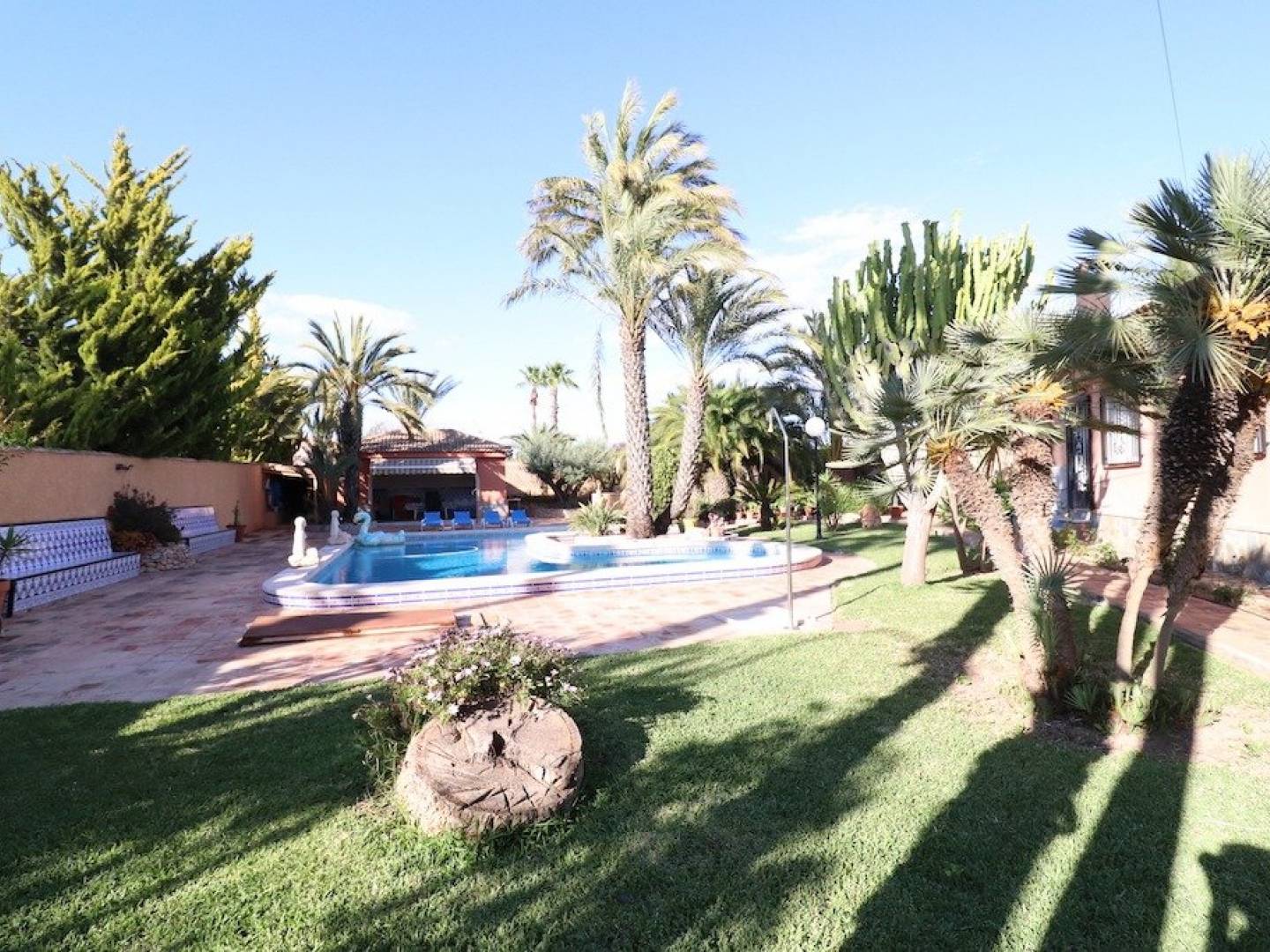 El Chaparral villa with a 1,900 m2 plot and a 380m2 house on two floors, the house has 5 bedrooms, 3 bathrooms, 2 living rooms, an independent kitchen, several terraces, a solarium with unobstructed views, a large pool area with large green areas and a caretaker for the barbecue, it has a guest house with a separate entrance and a beautiful Andalusian patio, a closed garage, the house is sold furnished and equipped, it has oil central heating, air conditioning.