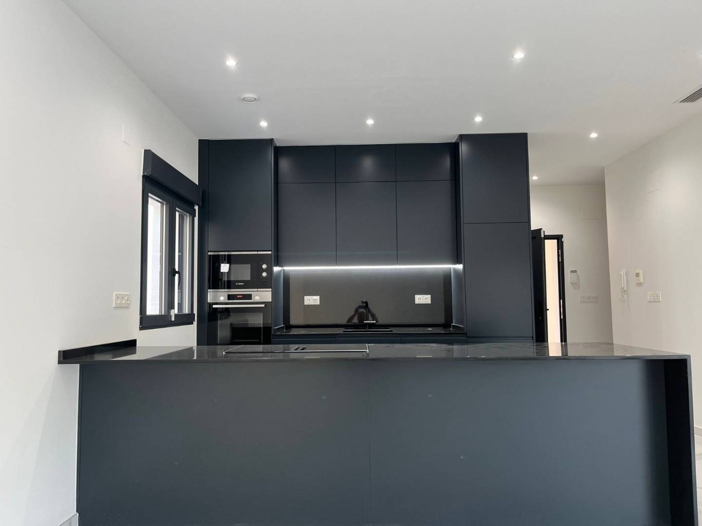 Upon entering, you will be greeted by a spacious open kitchen that blends harmoniously with the spacious living room and dining room. Neutral tones and clean lines create a feeling of spaciousness and lightness, while carefully selected design details add a touch of elegance.