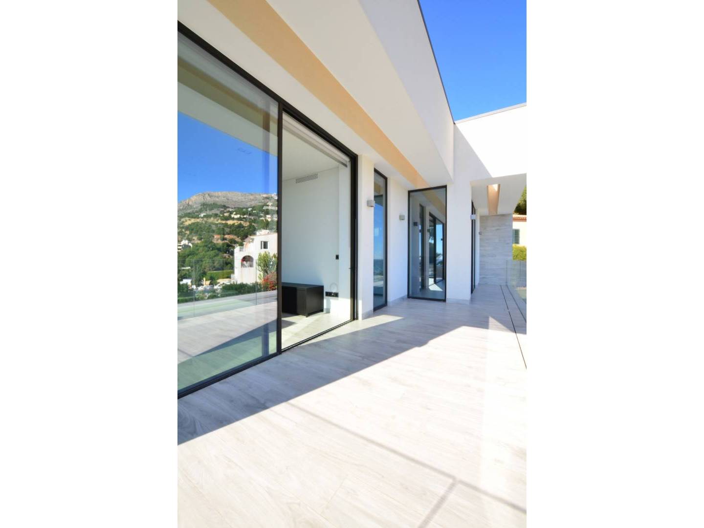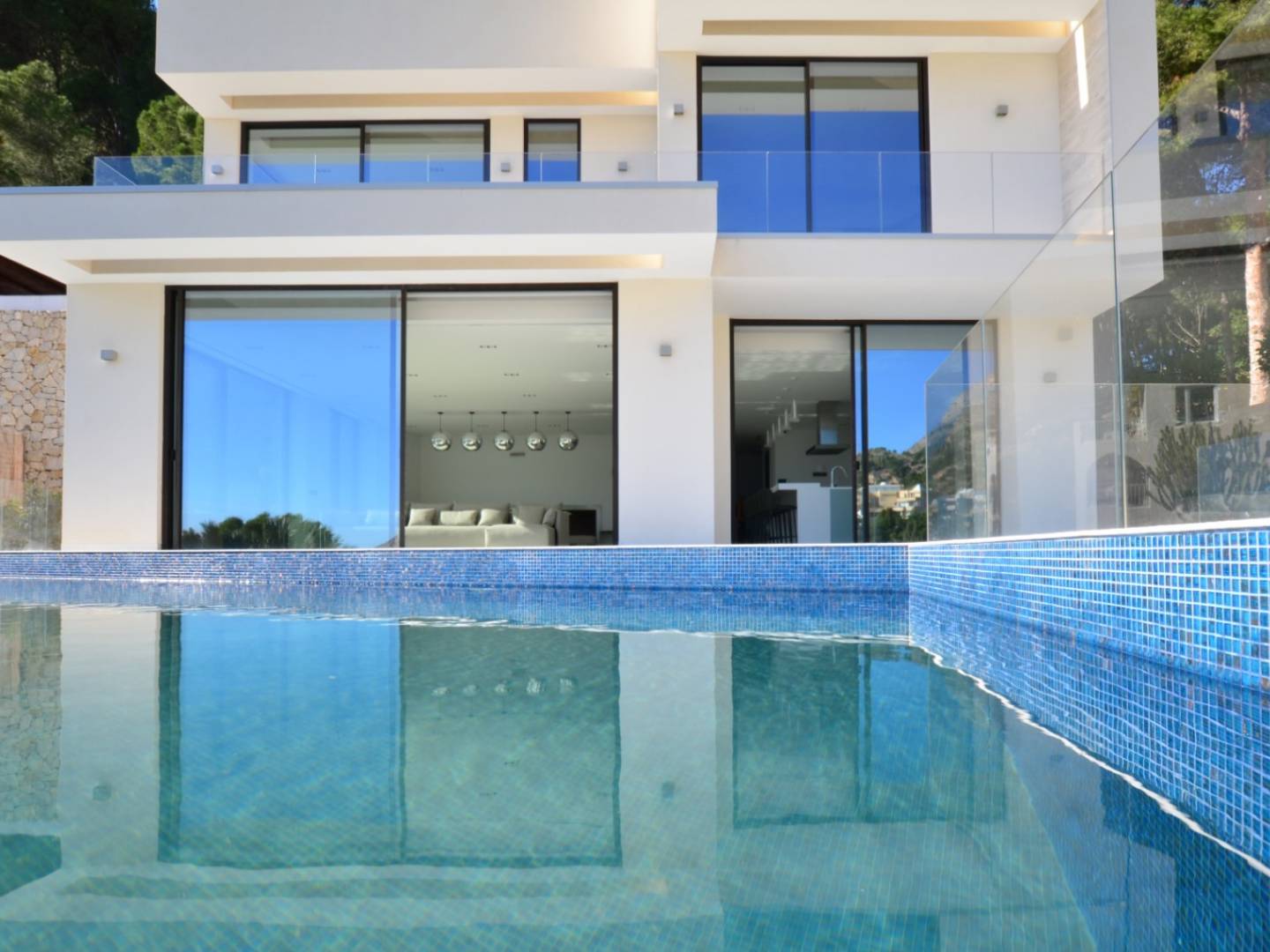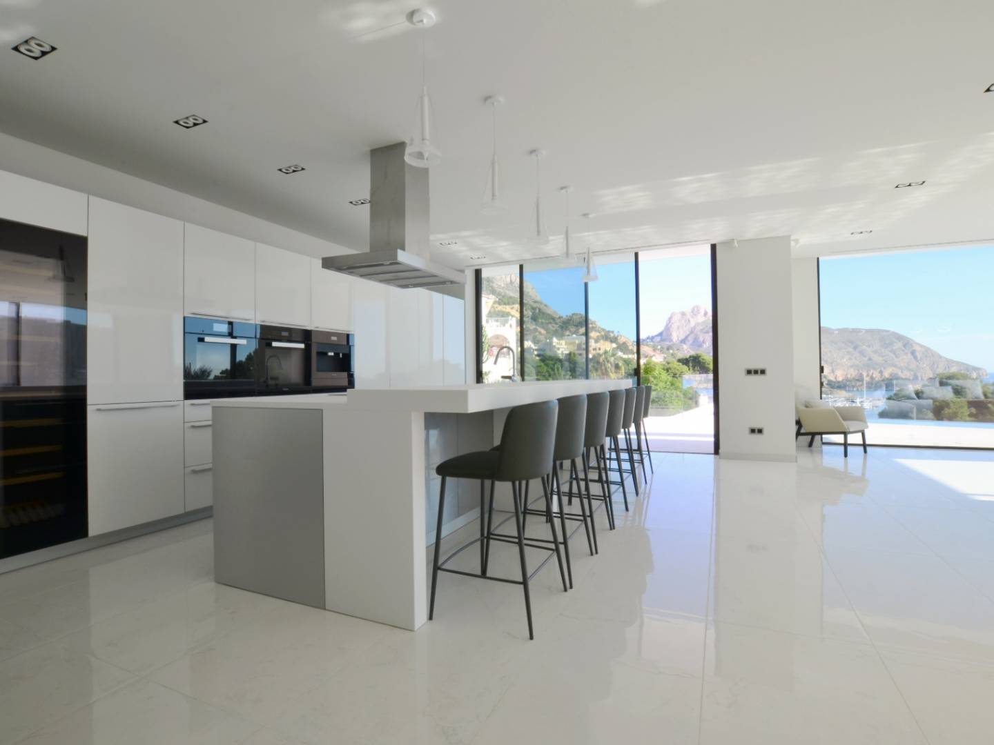 Splendid three- level residence with impressive views of the sea and the port, located in the Mascarat urbanization, near the center of Altea . A few steps from the beach and a short distance from the MasyMas supermarket, this refined home was built in 2020 and completed in 2021 , standing out for its high- end construction and decoration . With a total area of 353 m2 and a plot of 965 m2 , the villa includes a beautiful infinity pool and a garage for two vehicles .