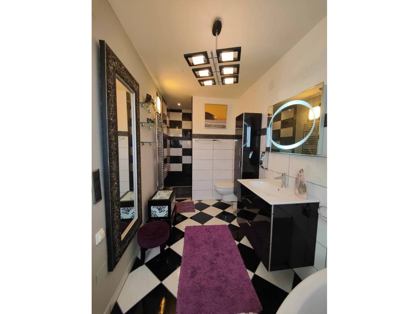 The upper floor houses the master bedroom with dressing room and bathroom , equipped with shower and bathtub . From several terraces, you can enjoy the impressive views of the cliffs and the salt lake of Calpe.
